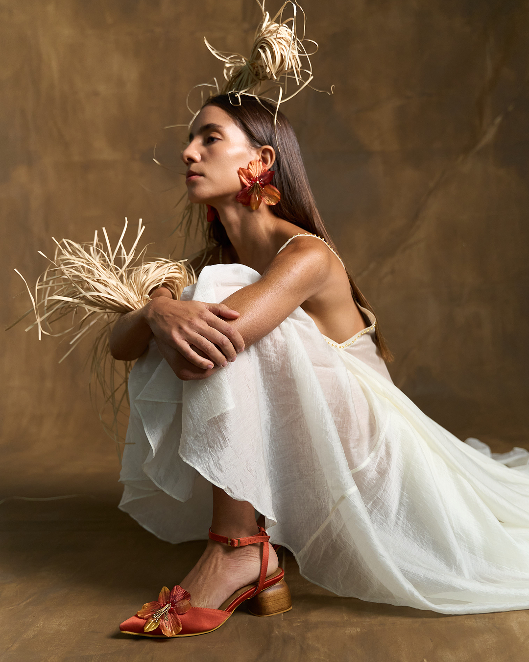 Orchid-type flowers made with pressed and cut fabric; in their center, we hand-embroider each bead (mostacilla), and ... -
