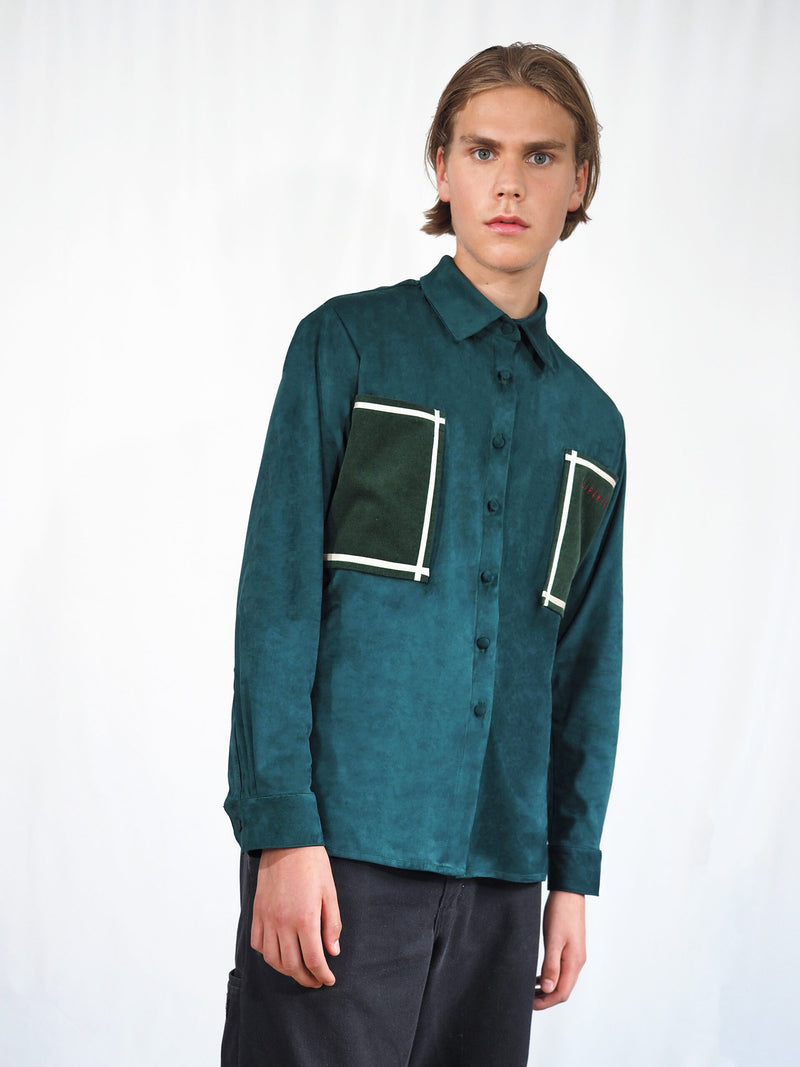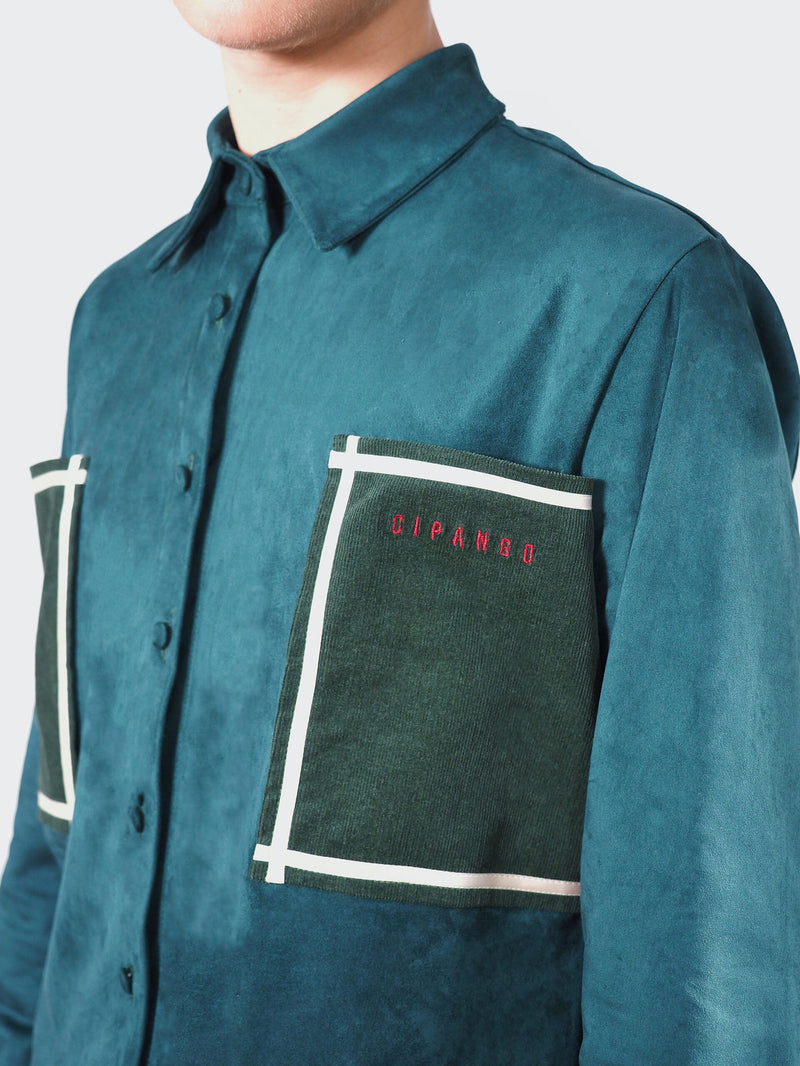 Made with suedine material and the pockets are made with corduroy Shirt : 100% polyester Pockets : 100% cotton.