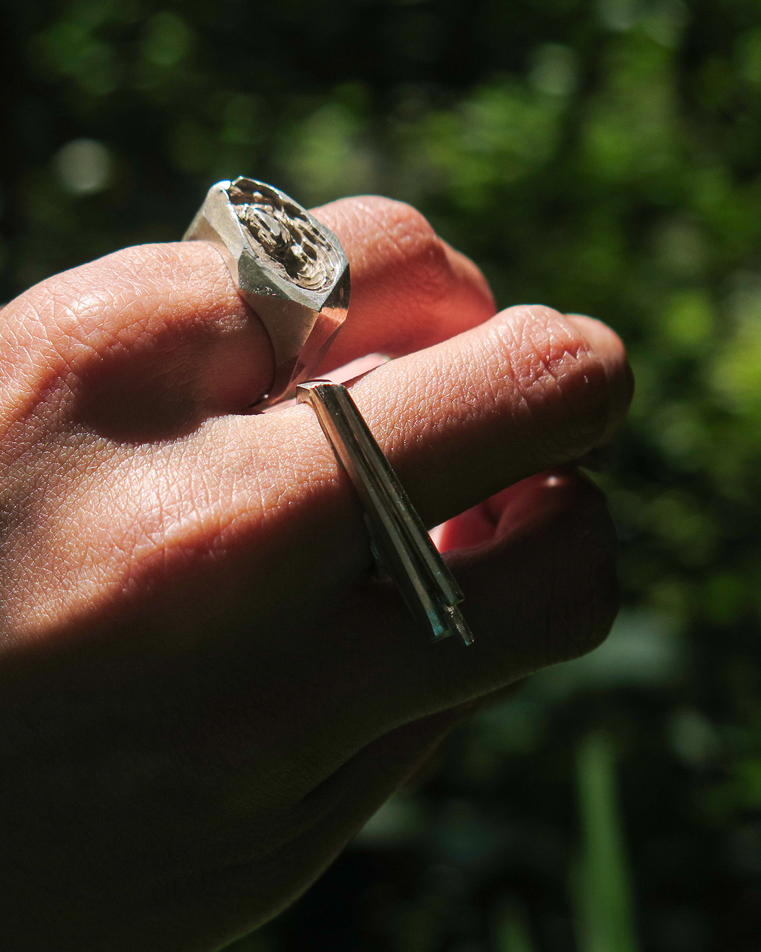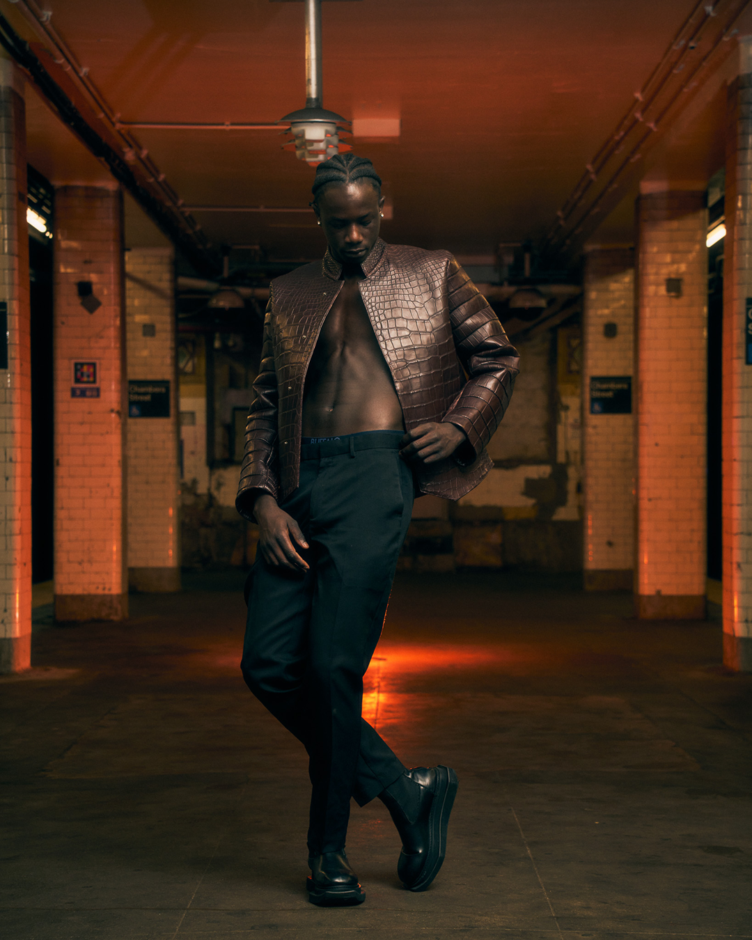 This blouse features a palm-shaped pocket crafted in crochet. The contrast between the deep black base and the vibran...