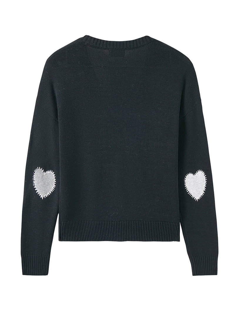 Elevate your wardrobe with Cherise – a heartwarming blend of comfort and romantic charm. This V-neck medium weight pullover features adorable asymmetrical heart elbow patches that add a touch of whimsy to a classic design.