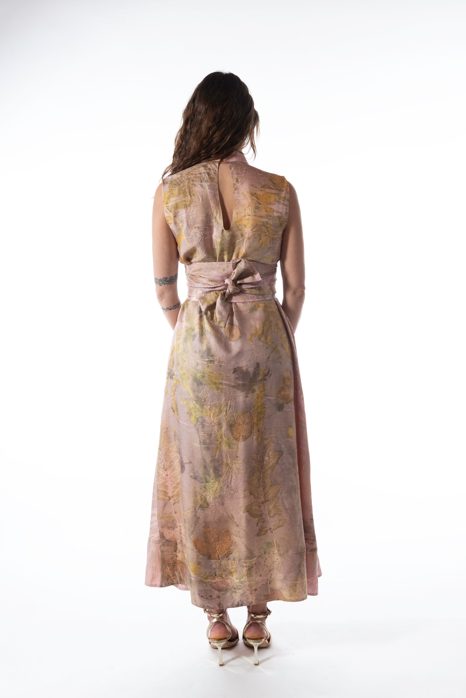 The prints and dyes are handcrafted in Italy using plants, flowers, and roots, which, through a natural process, permanently transfer their colors and shapes onto the fabric. The result is always unique and impossible to replicate, making each piece an exclusive and sustainable creation.
