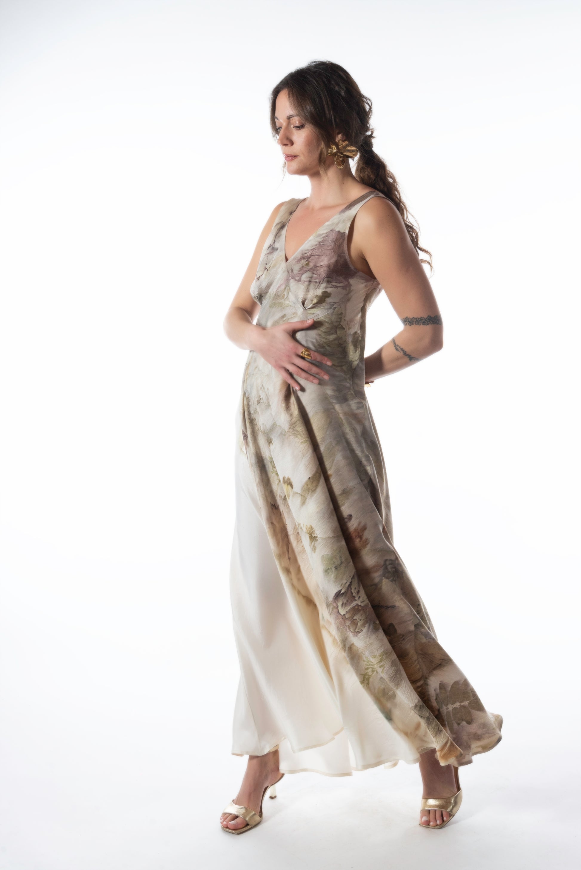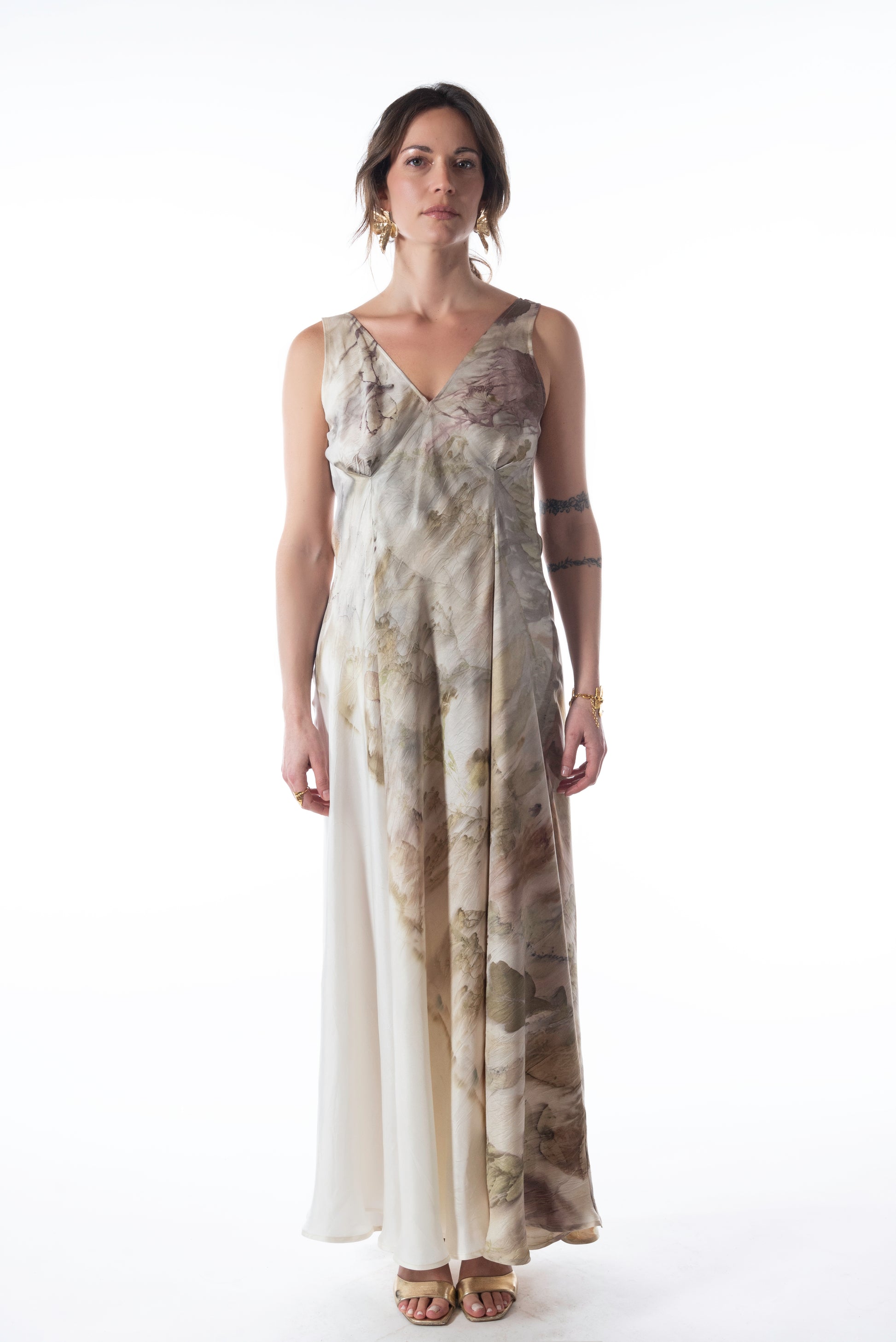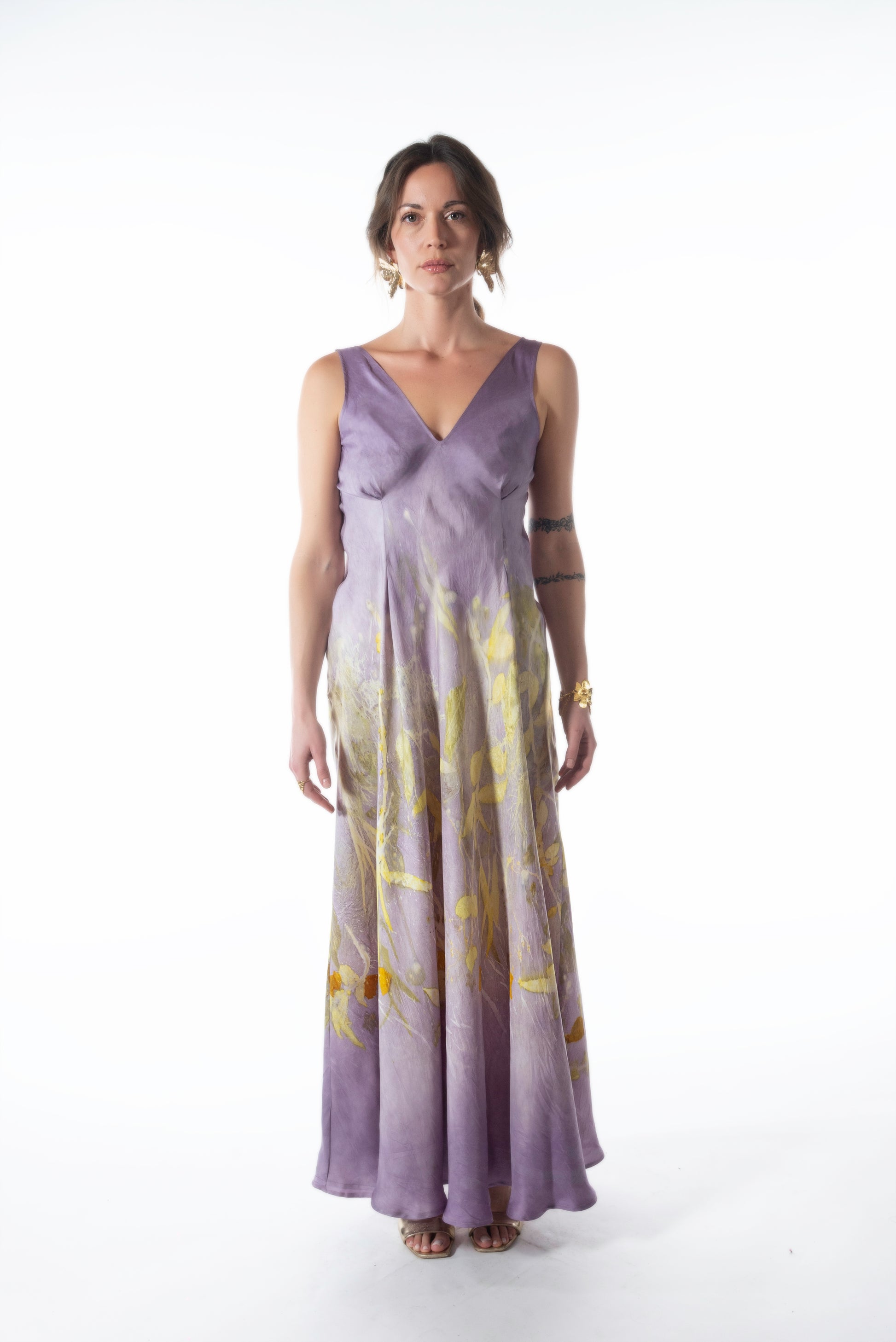 The prints and dyes are handcrafted in Italy using plants, flowers, and roots that, through a natural process, permanently imprint their color and form onto the fabric. The result is always unique and impossible to replicate, making each garment a truly exclusive and sustainable creation.
