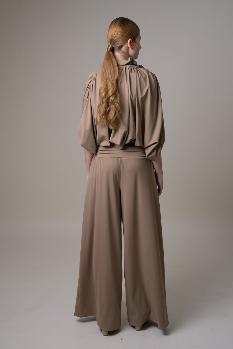 BLOUSE WITH GATHERED NECK AND ELASTIC WAISTBAND