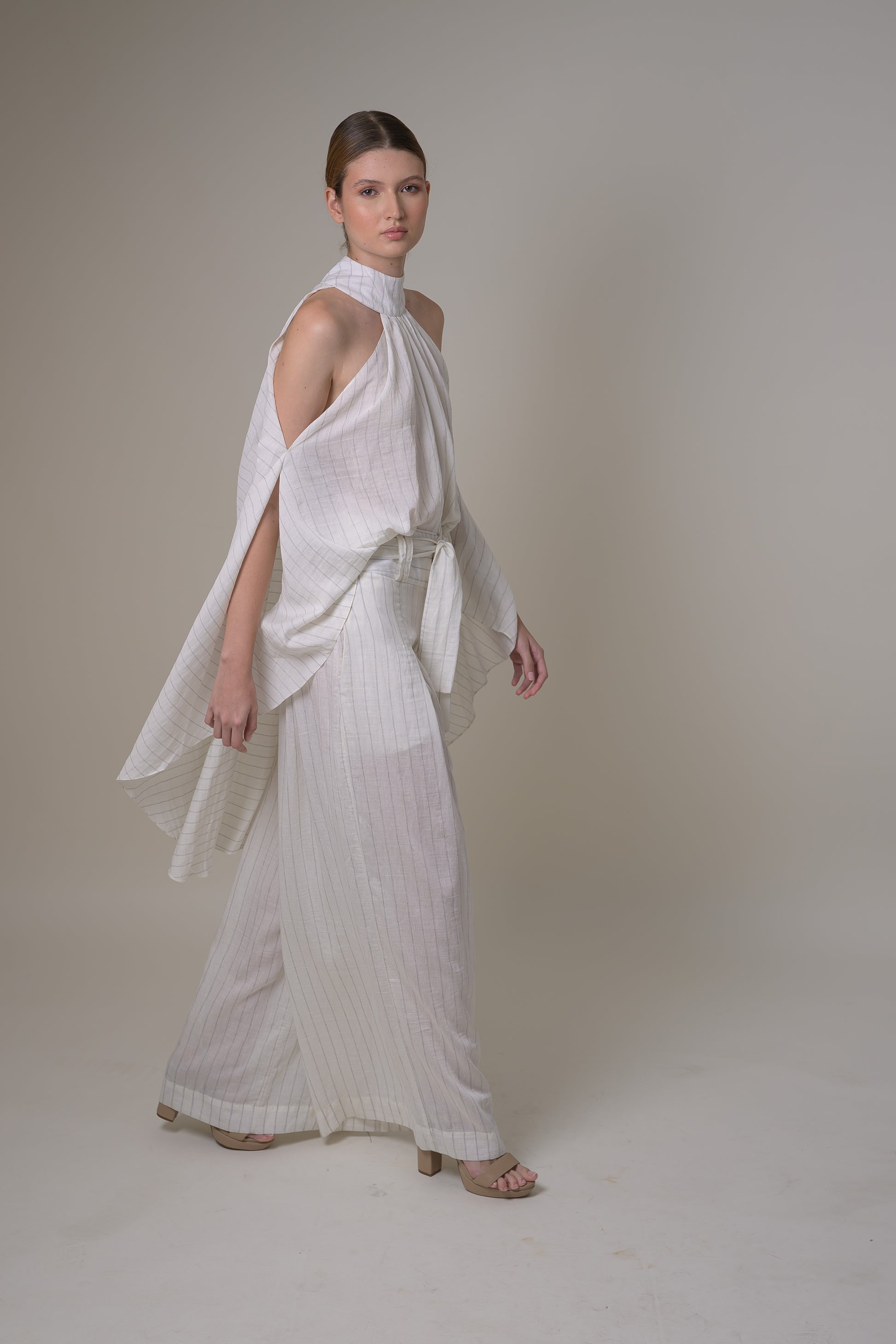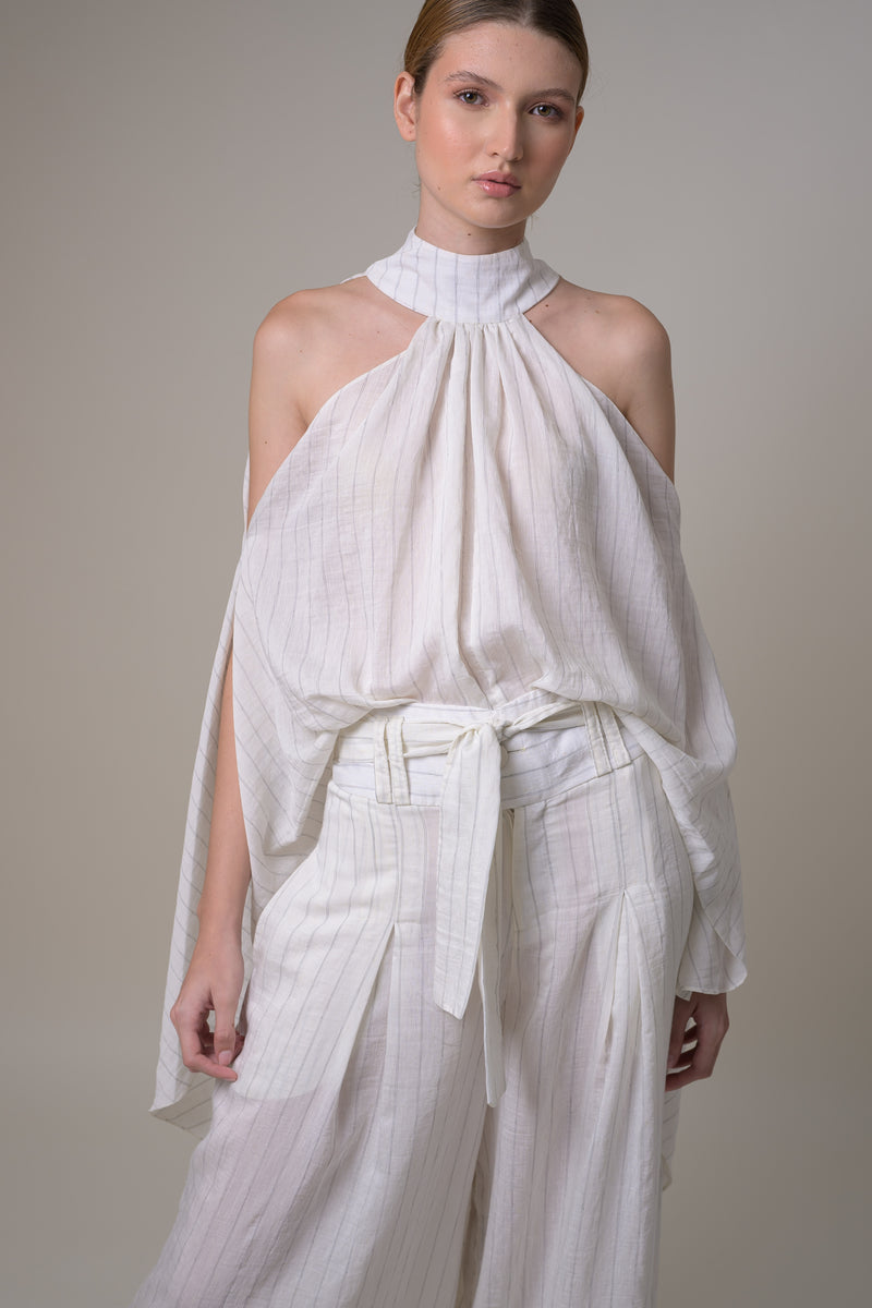 WIDE-LEG TROUSERS WITH PLEATS AND SASH