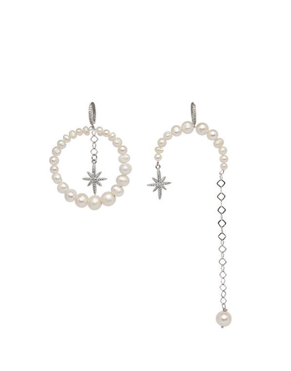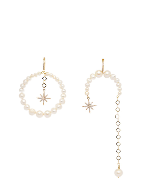 ASIMETRICAL “MORNING STAR” NATURAL PEARLS EARINGS