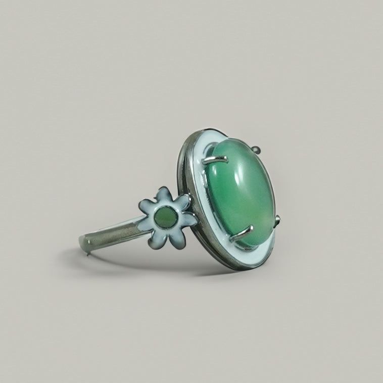 Elevate your style with our ethereal ring adorned with white French enamel flowers and chalcedony.