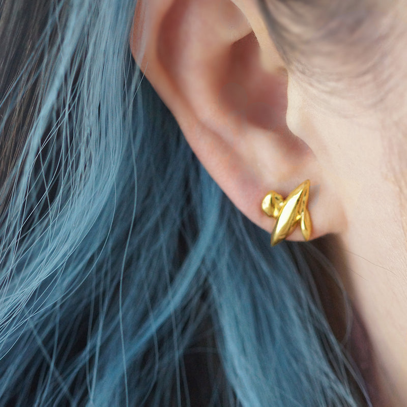 The CHAOS Studs are for those who appreciate the idea of finding harmony in the midst of life's unpredictability and who seek a unique, understated piece to express their individuality. Made in New york, crafted from sterling silver and plated with 18k yellow gold, these studs feature smooth curves and a polished finish, creating a sense of movement and fluidity. With no patterns or intricate designs, they embrace a clean, contemporary look that feels both modern and timeless. Their simplicity makes them a perfect accessory for those who appreciate innovative design in its purest form.