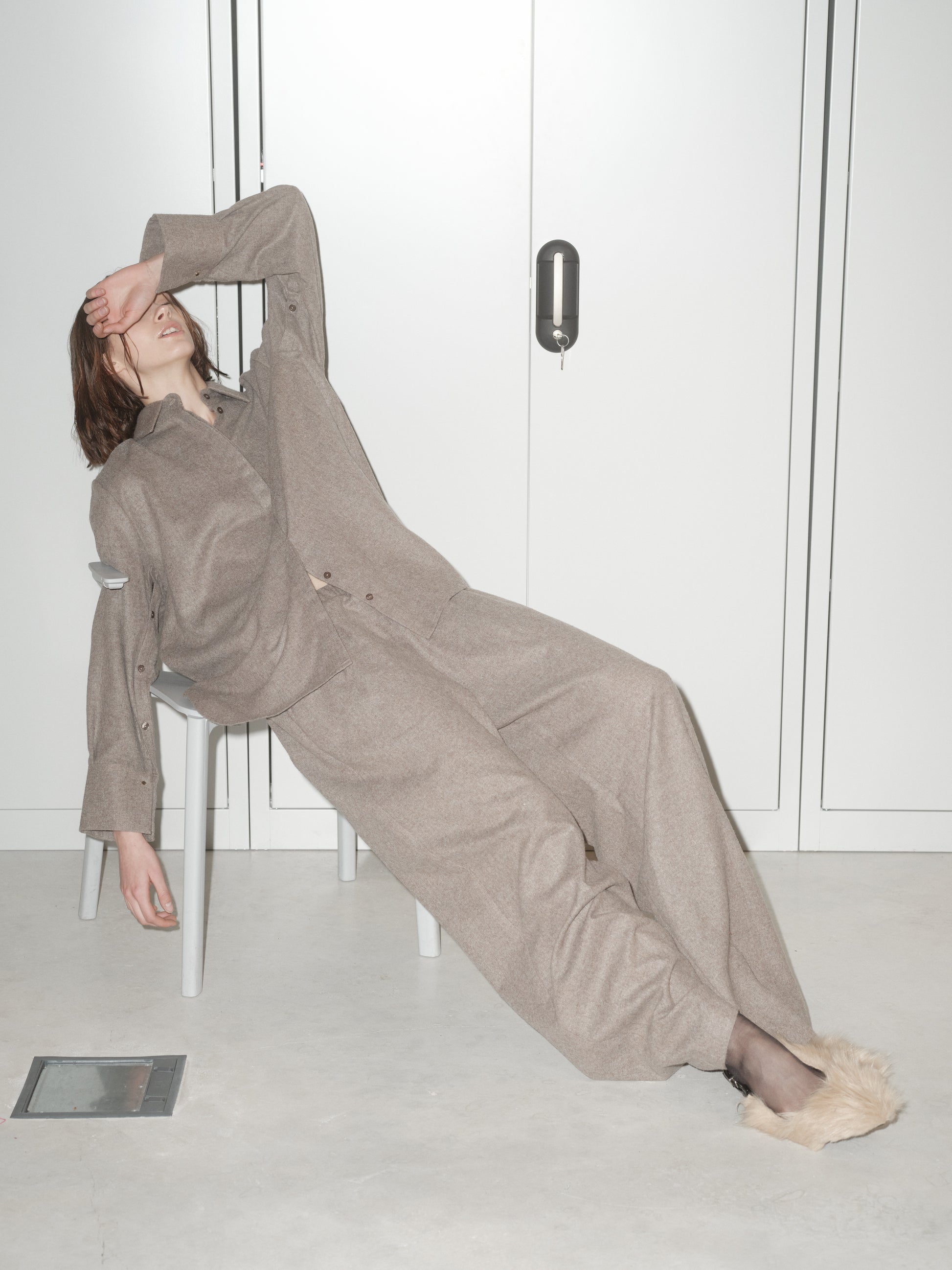 A unisex wool mix shirt featuring a distinctive sleeve design with button closures running the full length. Wear it fastened or open for a unique touch. Part of the "I AM NOT WASTED, I AM BEAUTIFUL" series, this shirt is crafted from limited-edition deadstock materials, combining style with sustainability.