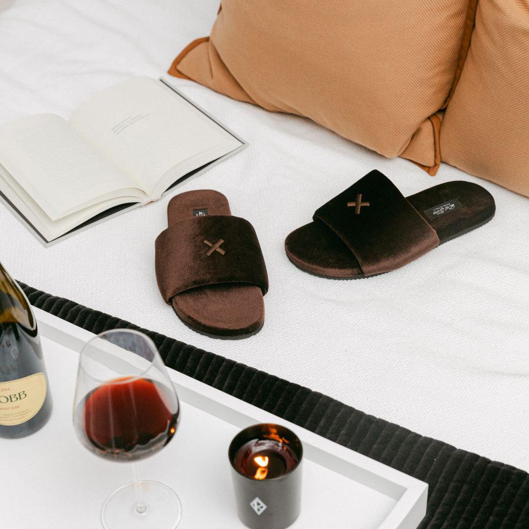 Constructed from the same premium velvet as our iconic Velvet Slipper, the House Slide takes in-home comfort and convenience to a new level. The upper band wears like a pillow for your feet and is complemented with a cushioned footbed for that “walking on clouds” feel. We use a lightweight thin rubber sole for durability and making running a quick errand easy. Work from home or lounge from home – the Velvet House Slide is
