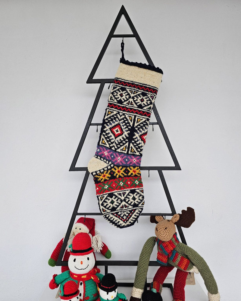 Not red, nor green, but a navy background, which is creating such a sophisticated look for this stocking. Hang it by the hearthside and wait for Mr. Santa to fill it with goodies. It’s a tradition we’re sure you’ll look forward to every year.