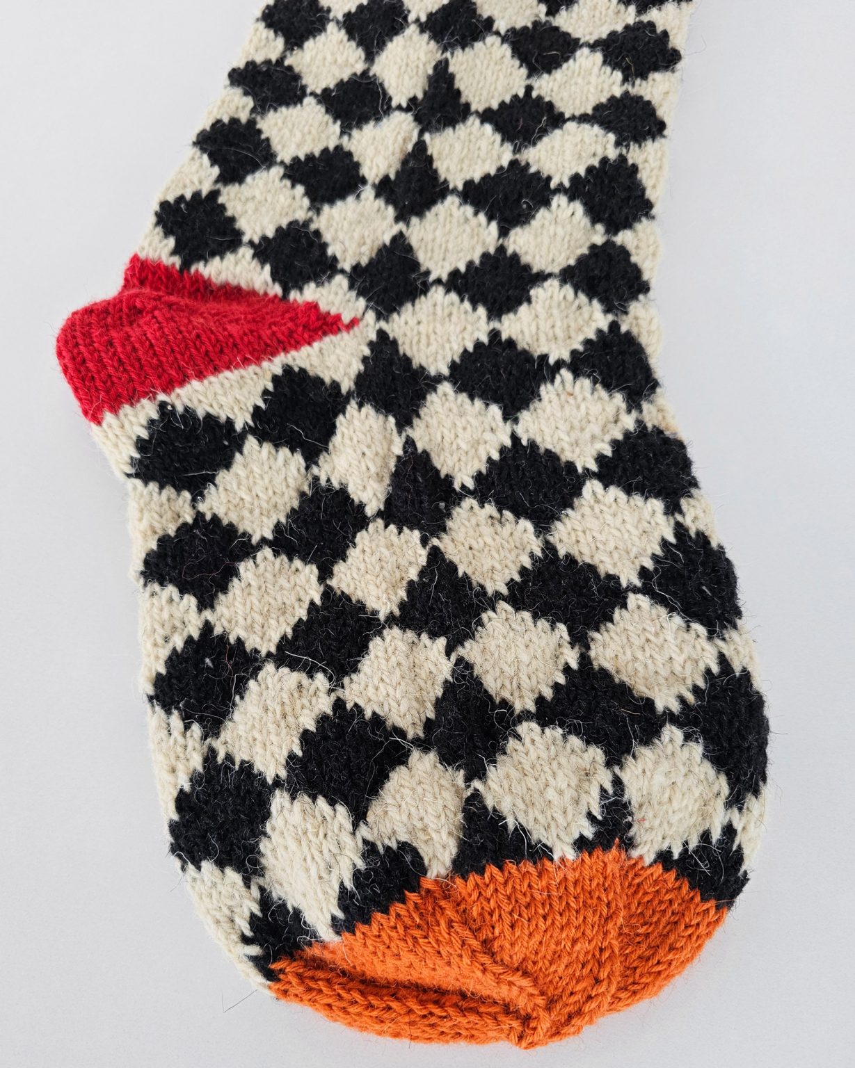 Timeless black and white dogtooth background with a dash of colors in a variety of bobbles, heels and toes.
