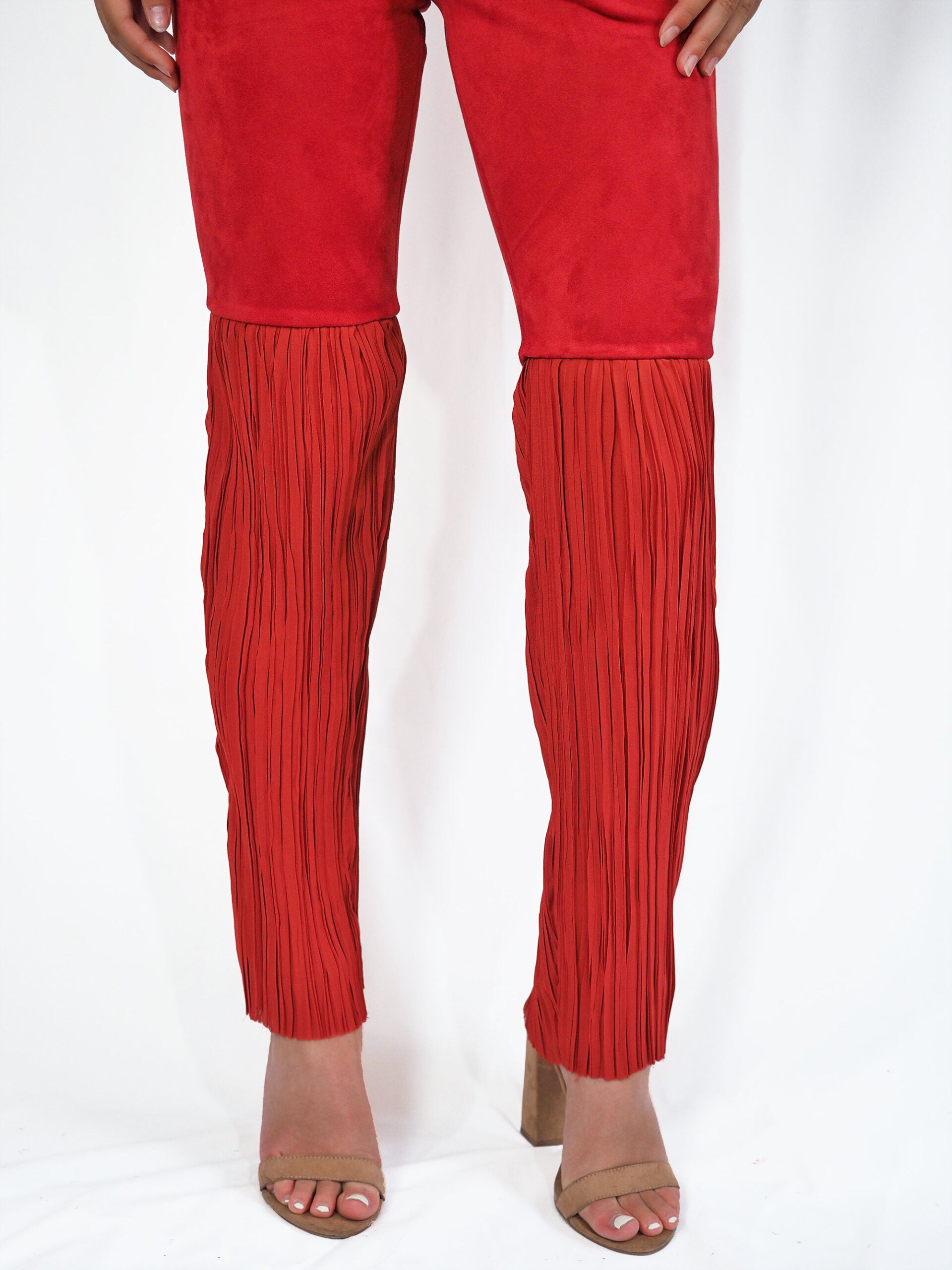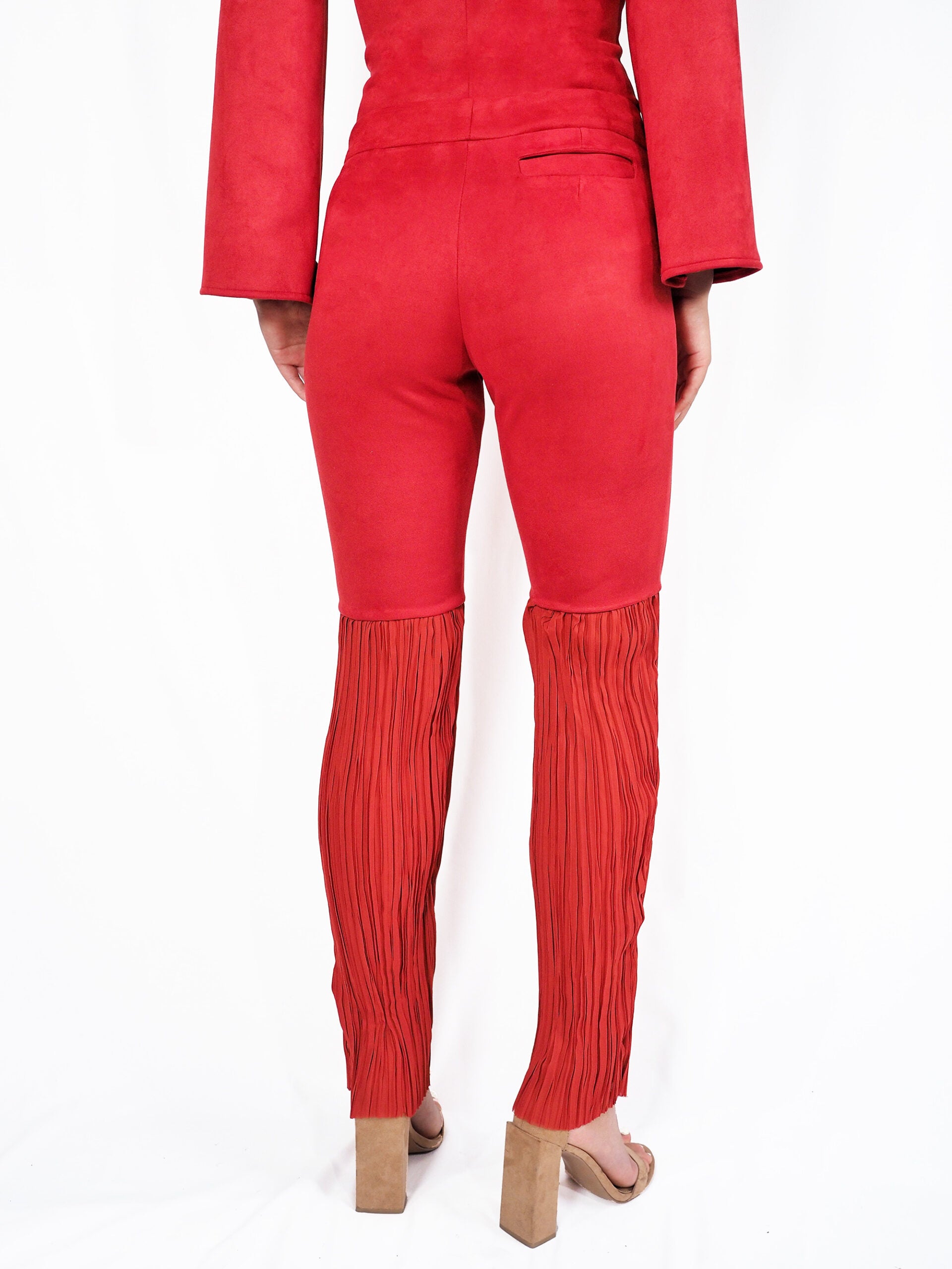 Tight pant with pleats , made with a soft and stretchy material. Zipper in the front side.