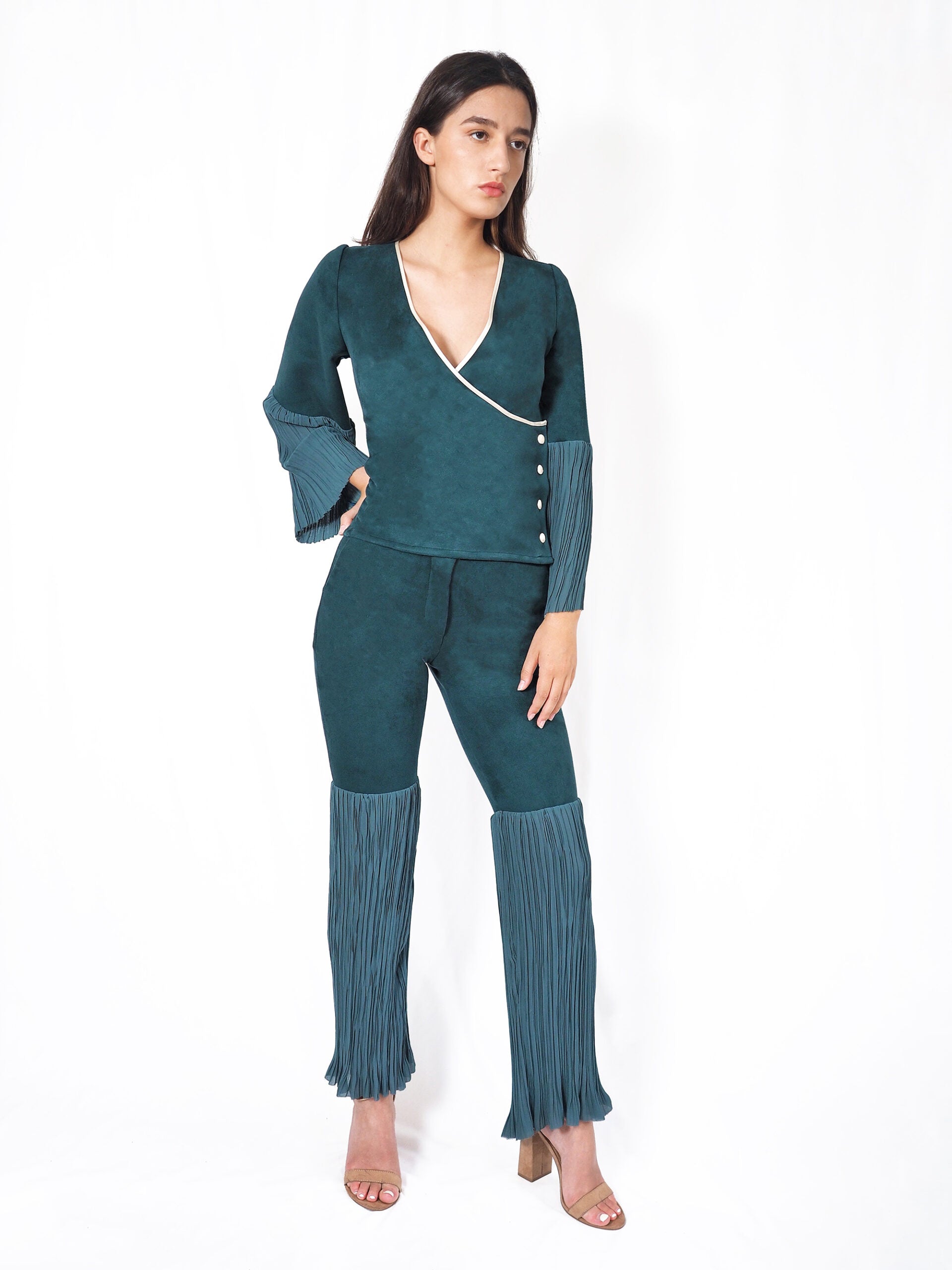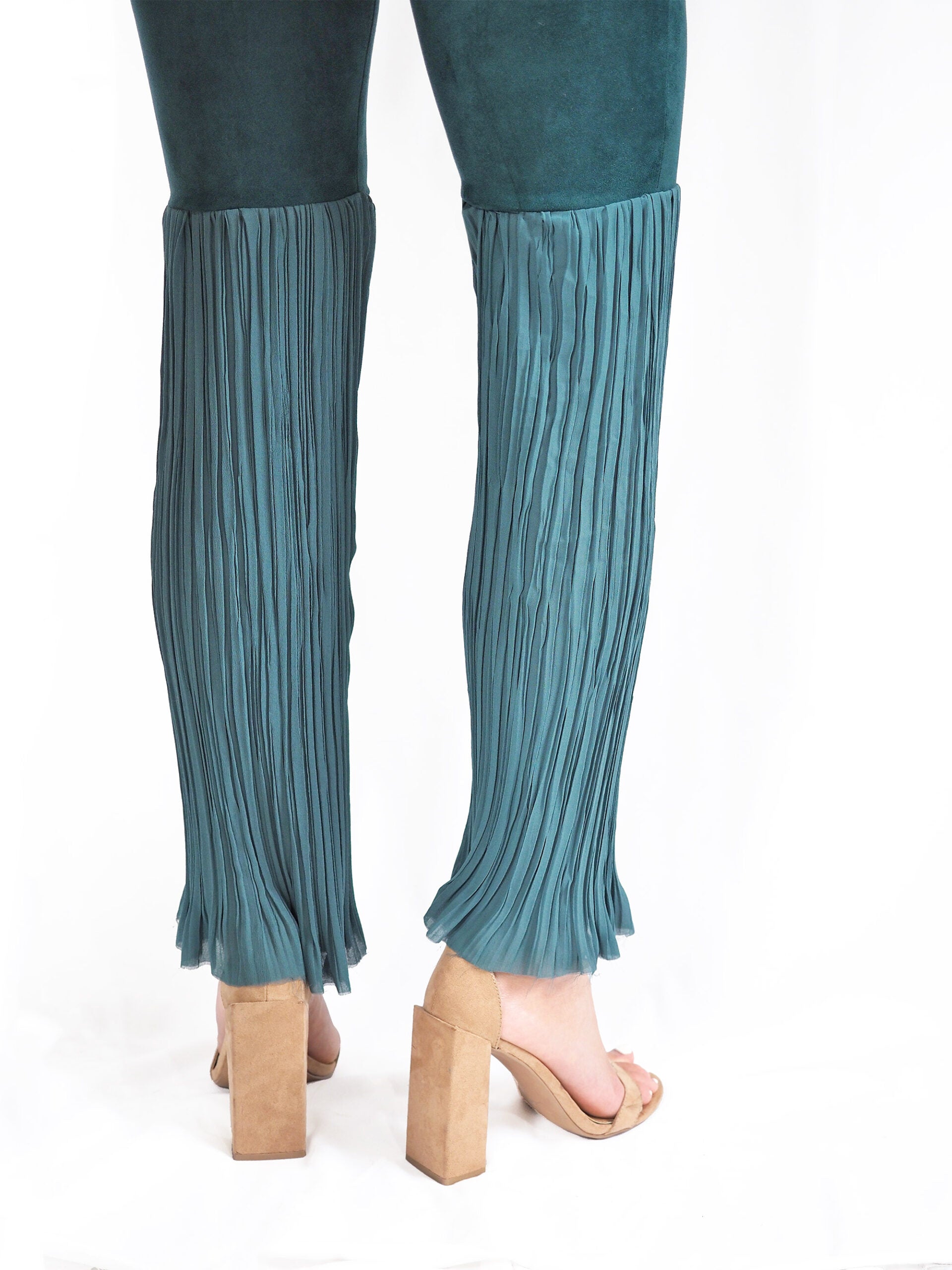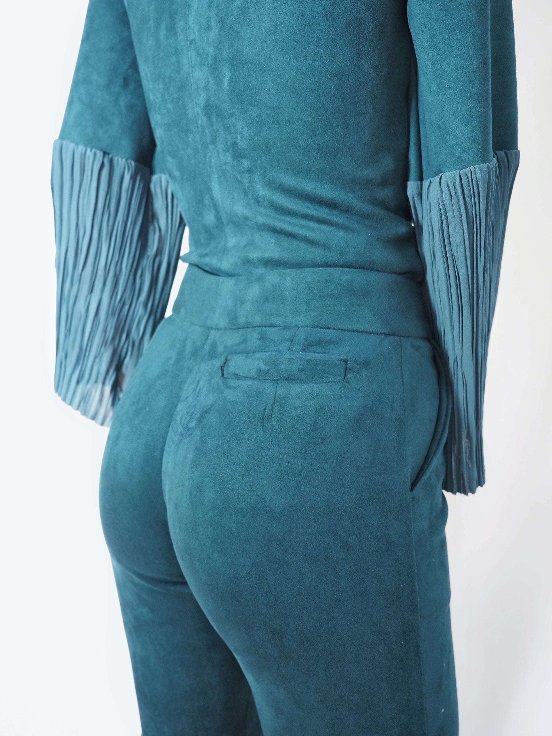 Tight pant with pleats , made with a soft and stretchy material. Zipper in the front side.