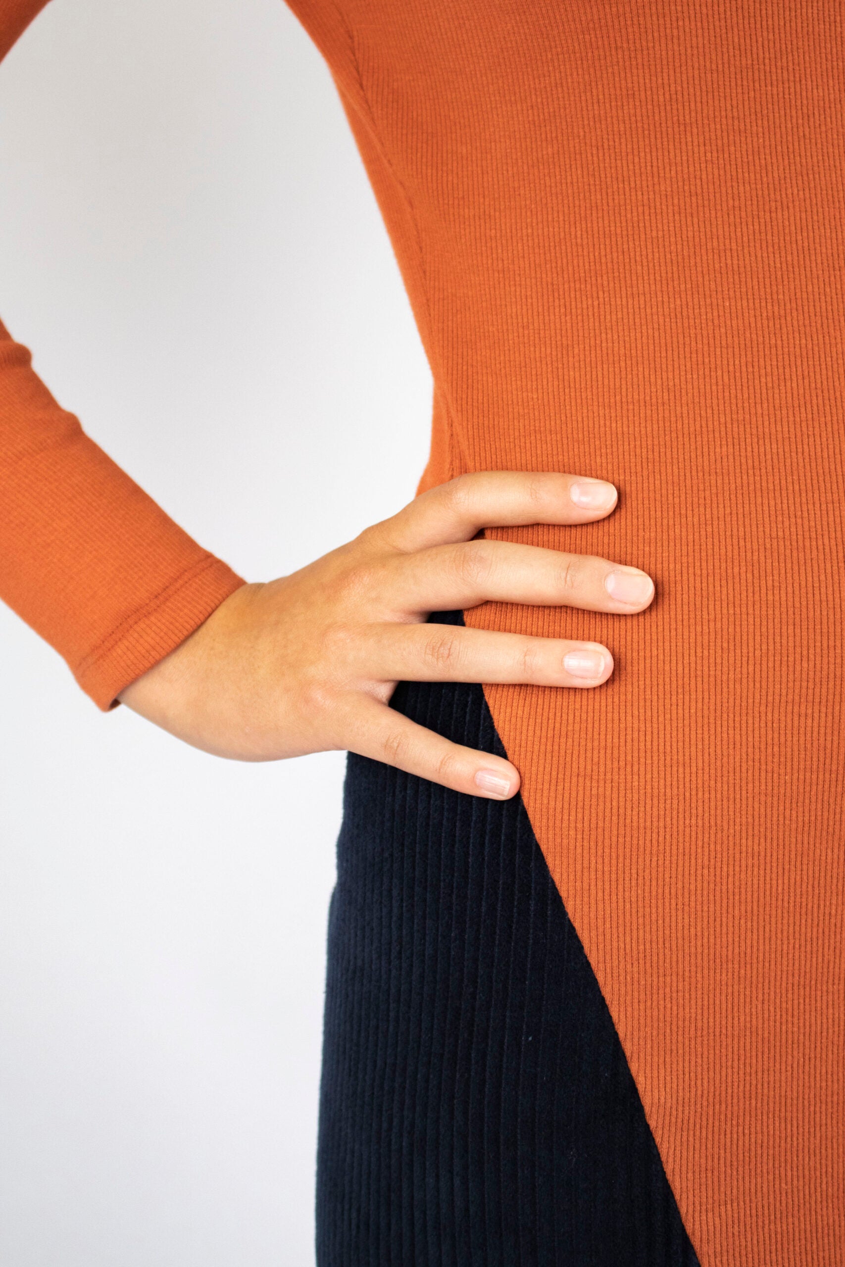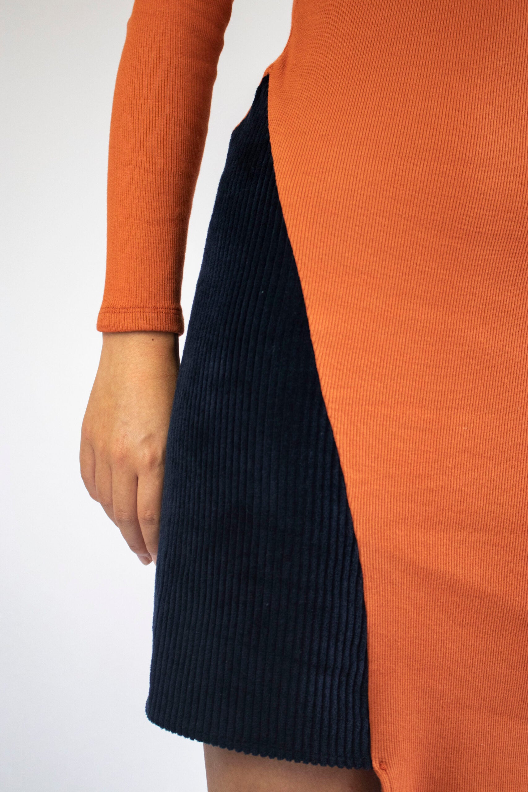 Cotton rib knit and cotton velvet.