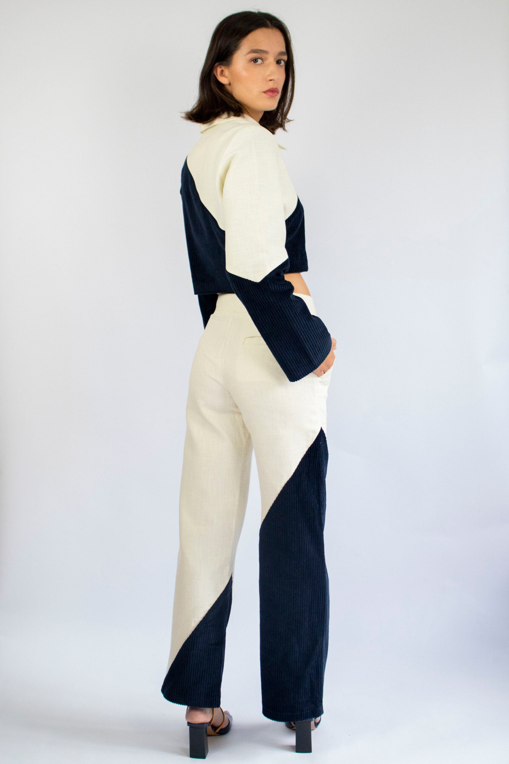 The Ha-Neul trousers can be combined with the Cho jacket from the new collection.