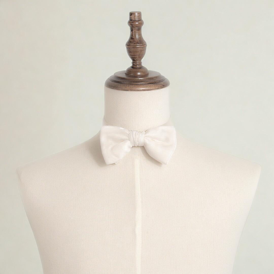 Classic Velvet Bow Tie - Vintage White