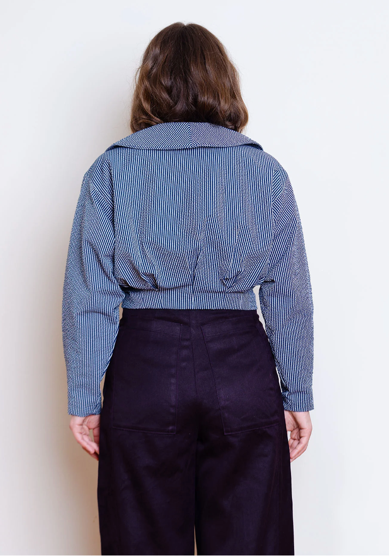 Made from a beautiful classic pinstripe seersucker fabric.