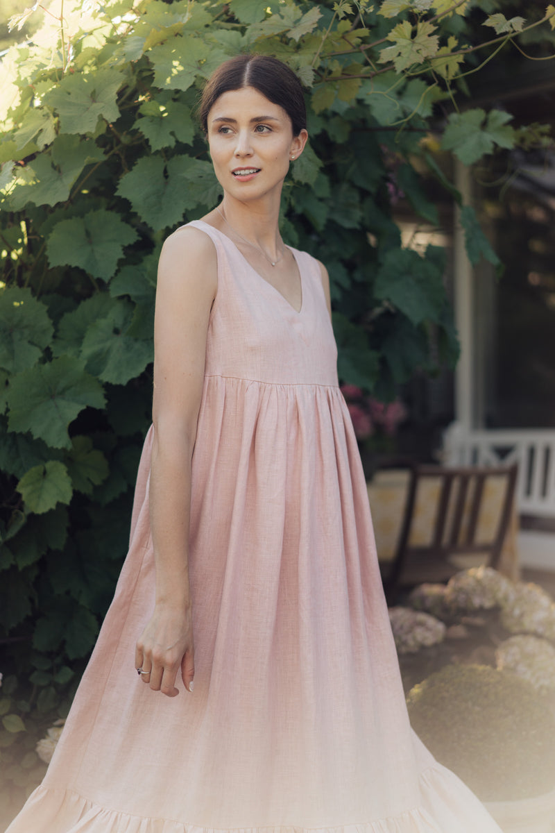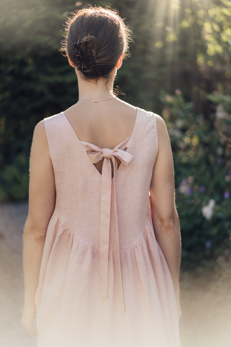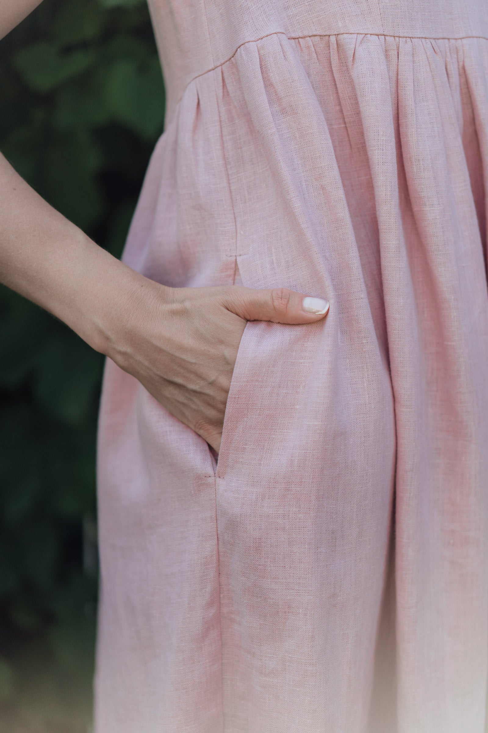 The Emma Dress is a feminine, playful, yet relaxed piece, perfect for both casual at-home wear or stylish resort outings with espadrilles. Made ethically in Haapsalu, Estonia, from 5 meters of EU-sourced, OEKO-TEX® certified linen in blush, it features hidden side pockets for added convenience.