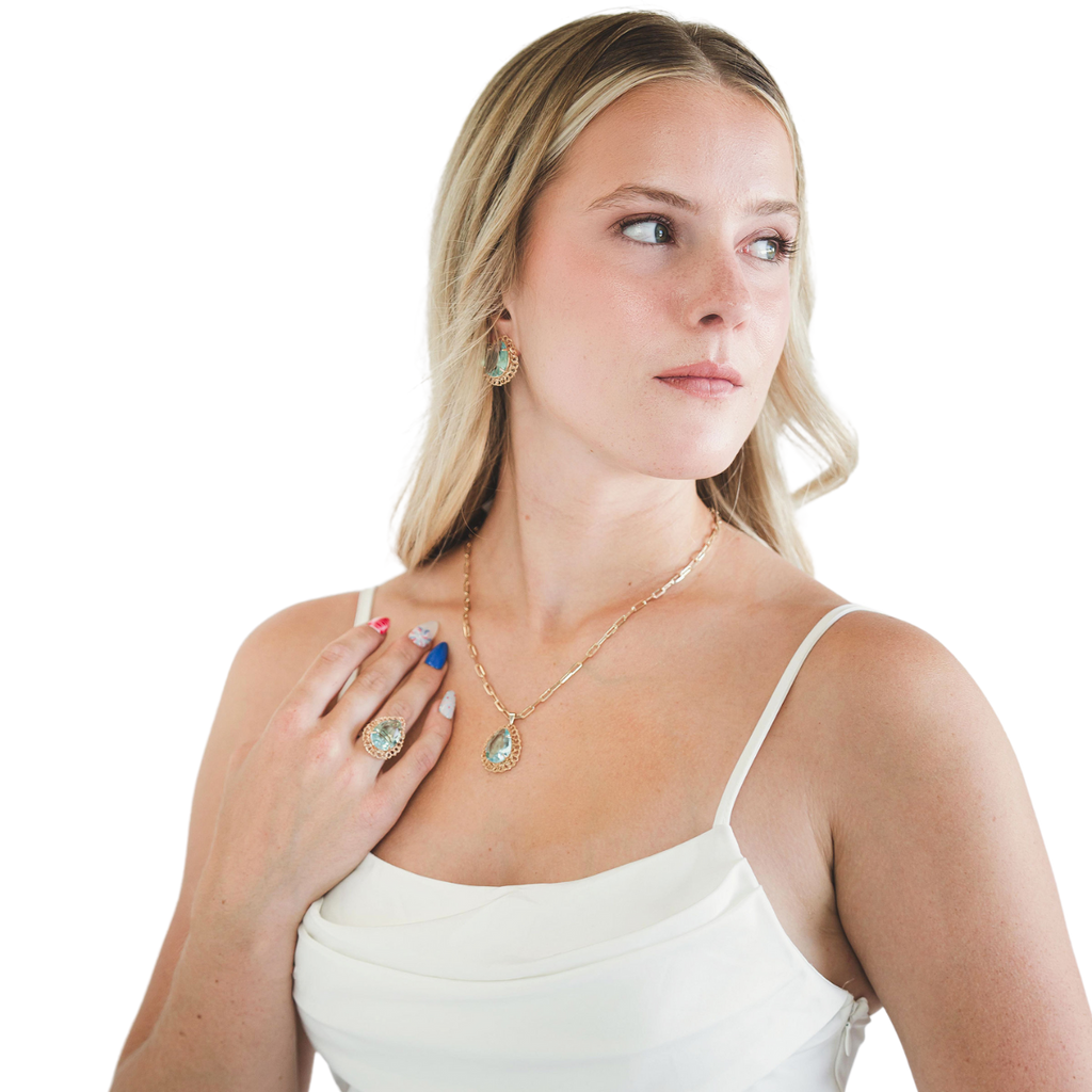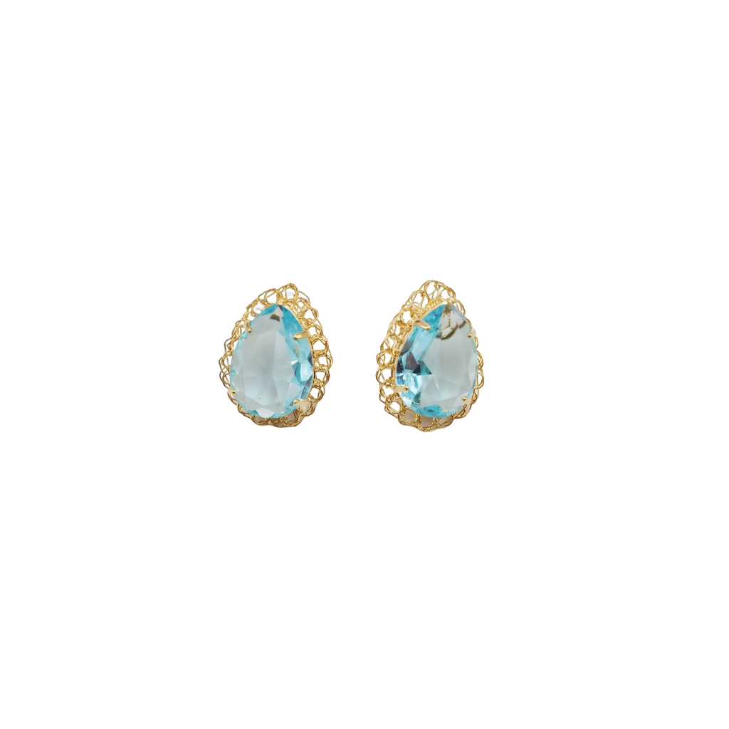 The glass drop is transparent, adding a subtle shimmer that catches the light and adds to the earring's overall beauty. The earring is lightweight and comfortable to wear, making it ideal for daily use.