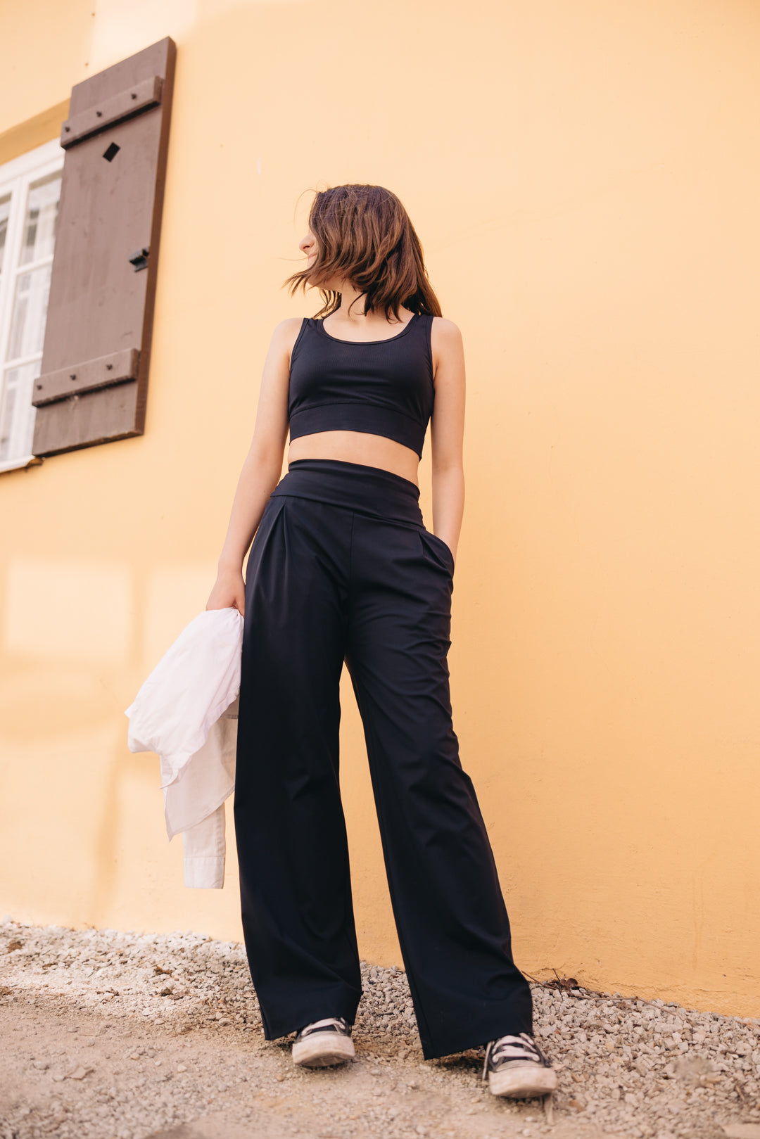 Made of our famous recycled fabric these wide-leg trousers are comfortable and chic to wear for every occasion. The material used is just as luxurious as that of the formal EVERYWEAR sweatpants of TUUB. These pants are versatile and can be paired with both stilettos and sneakers.
