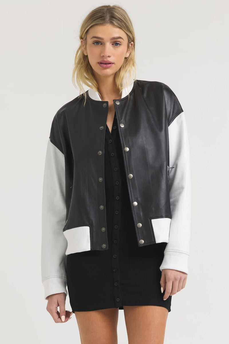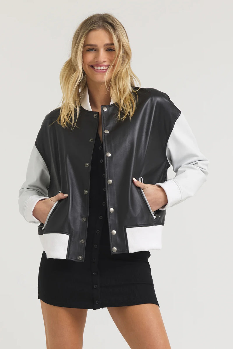 Sleek and chic. A cropped leather jacket featuring a full zip, knit detailing at the collar, cuffs and waist as well as a zippered pocket. Pair with your sleekest leather pants to be the baddest girl on the block. Break all the rules with affordable luxury leather jackets from JKT. Mindfully crafted for the playful and carefree woman who dances to her own fashion rhythm.