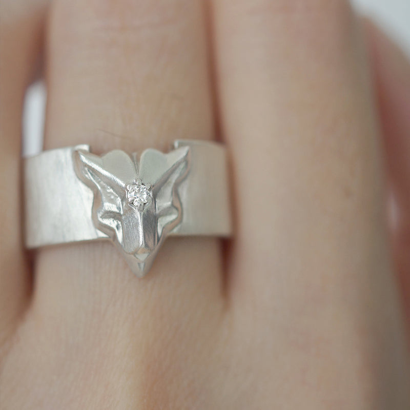 The FEROX Cougar Ring is a bold, geometric interpretation of strength and elegance. Made in New York, crafted from sterling silver and plated with 18k yellow gold, this ring features an intricate origami-style cougar head at its center. Unlike traditional, vivid representations of wildlife, the design takes a minimalist, angular approach, focusing on sharp lines and clean shapes to create a striking, modern aesthetic.