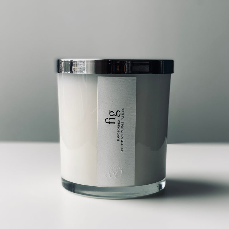 This scent has as its top note the fresh and crisp scent of sweet figs. It has a heart of green and floral notes and wood and musk to balance out the base. 8 oz soy candle.