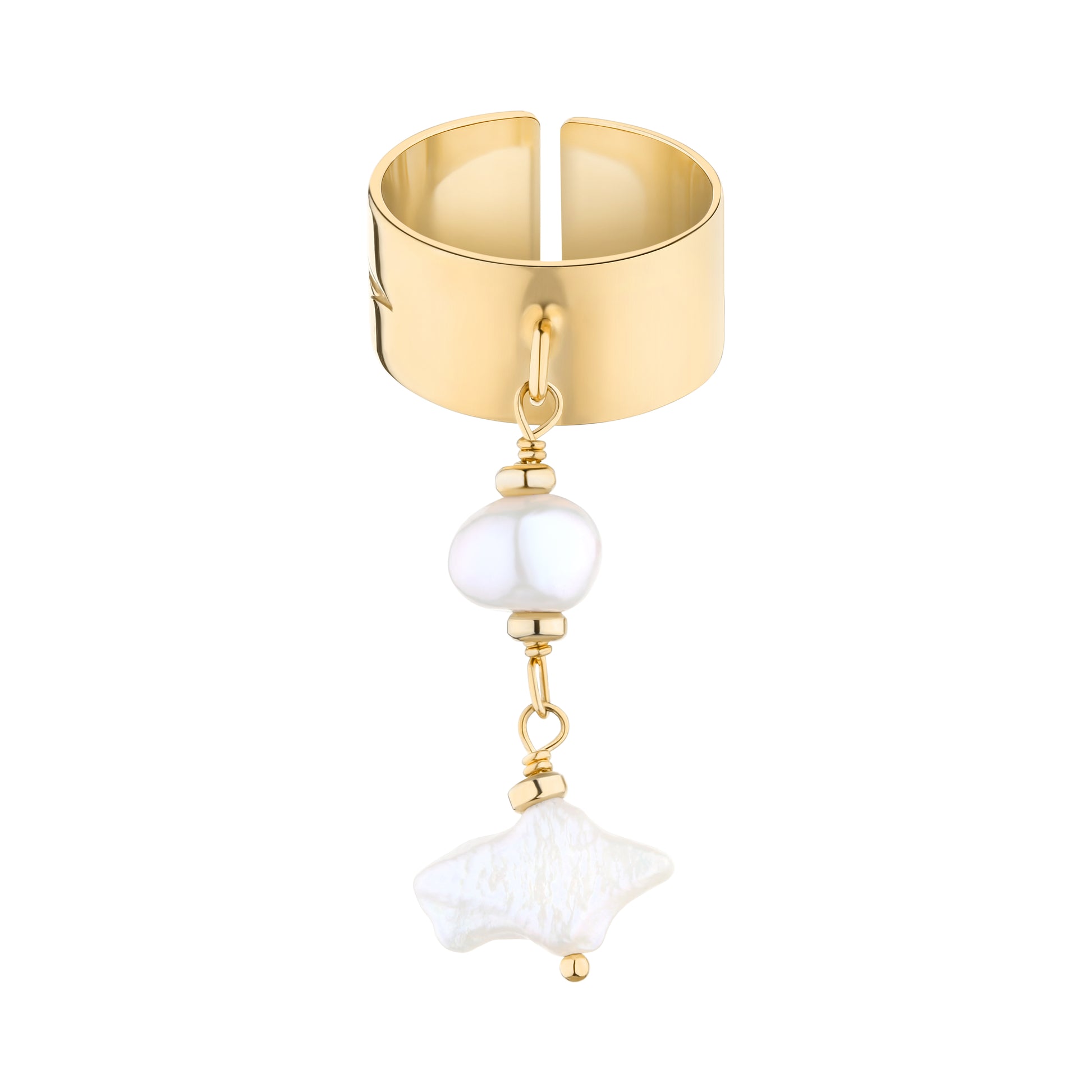 Made of 925 sterling silver with gold plating and natural freshwater pearls. Adjustable size. Nickel free.