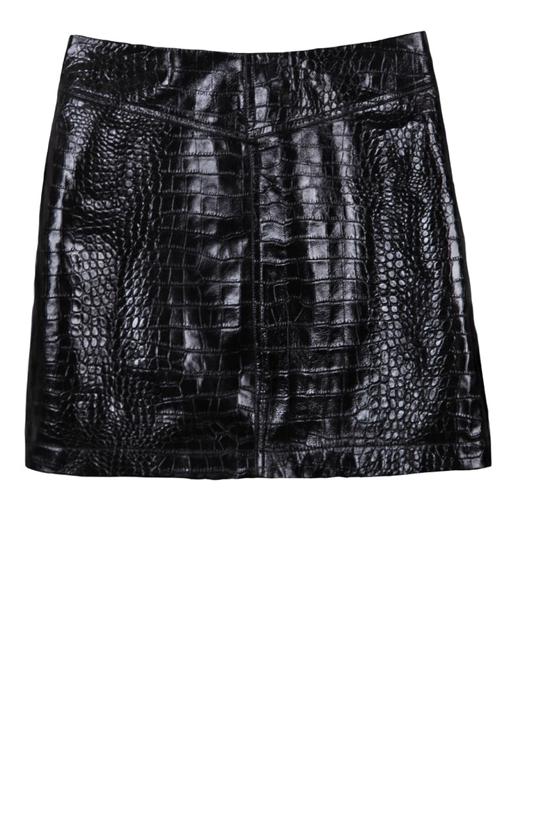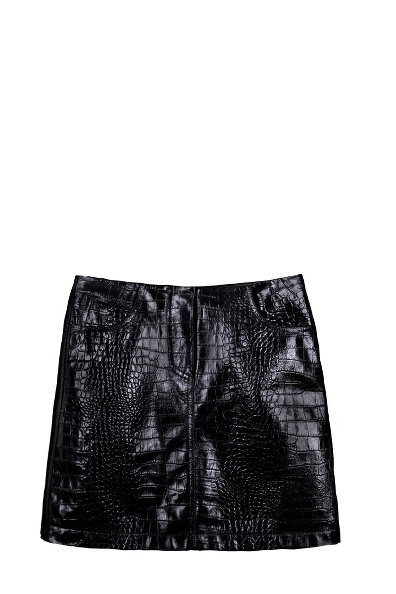 ALLIGATOR PRINT OIL WAX SHEEPSKIN SKIRT