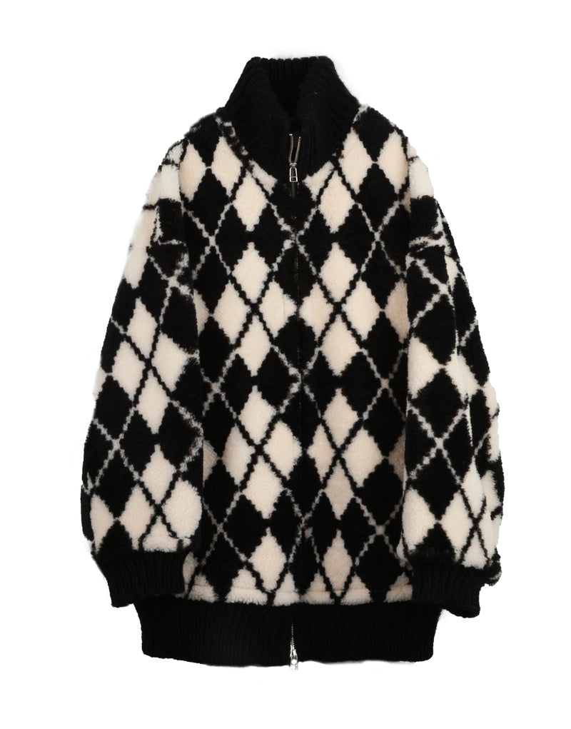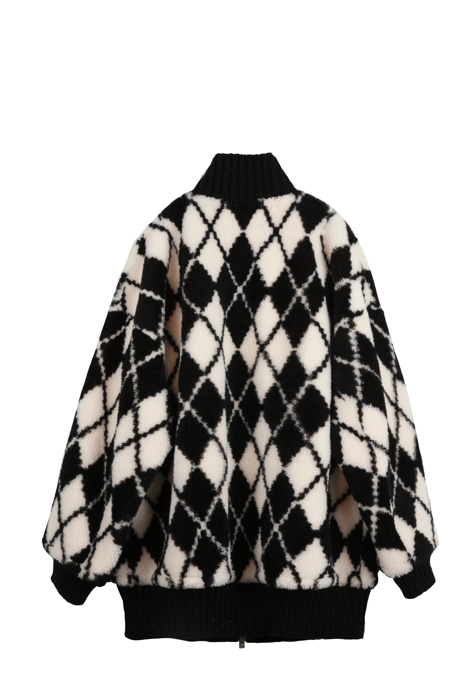 ARGYLE-PATTERN FUR ZIP-UP COAT