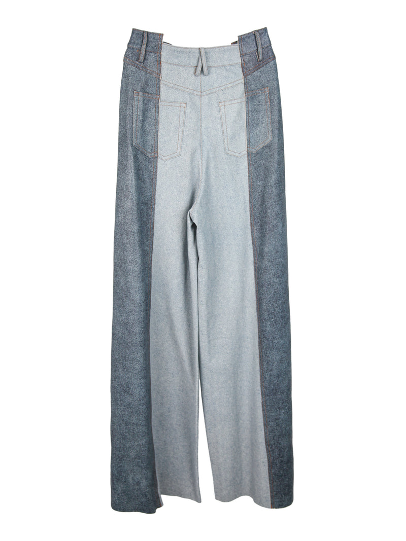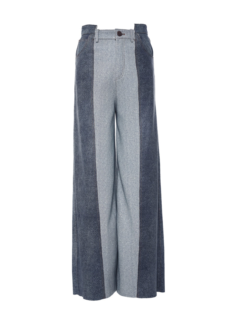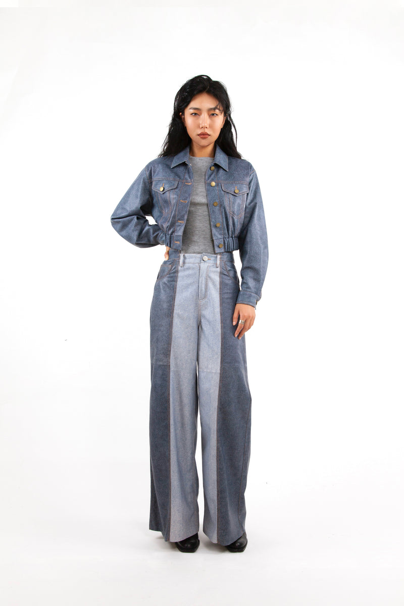 COLOUR-BLOCK PANELLED LEATHER WIDE LEG PANTS