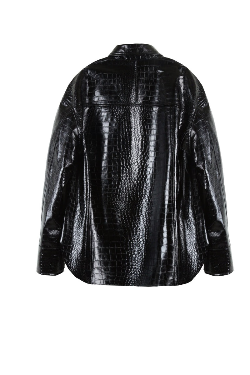 CROCODILE PRINT OIL WAX SHEEPSKIN SHORT TRENCH COAT