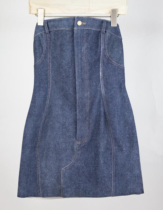 DENIM STRETCH SHEEPSKIN STRAPLESS DRESS