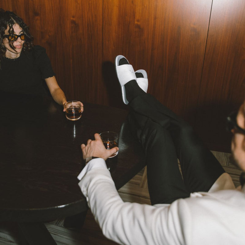 Constructed from the same premium velvet as our iconic Velvet Slipper, the House Slide takes in-home comfort and convenience to a new level. The upper band wears like a pillow for your feet and is complemented with a cushioned footbed for that “walking on clouds” feel. We use a lightweight thin rubber sole for durability and making running a quick errand easy. Work from home or lounge from home – the Velvet House Slide is