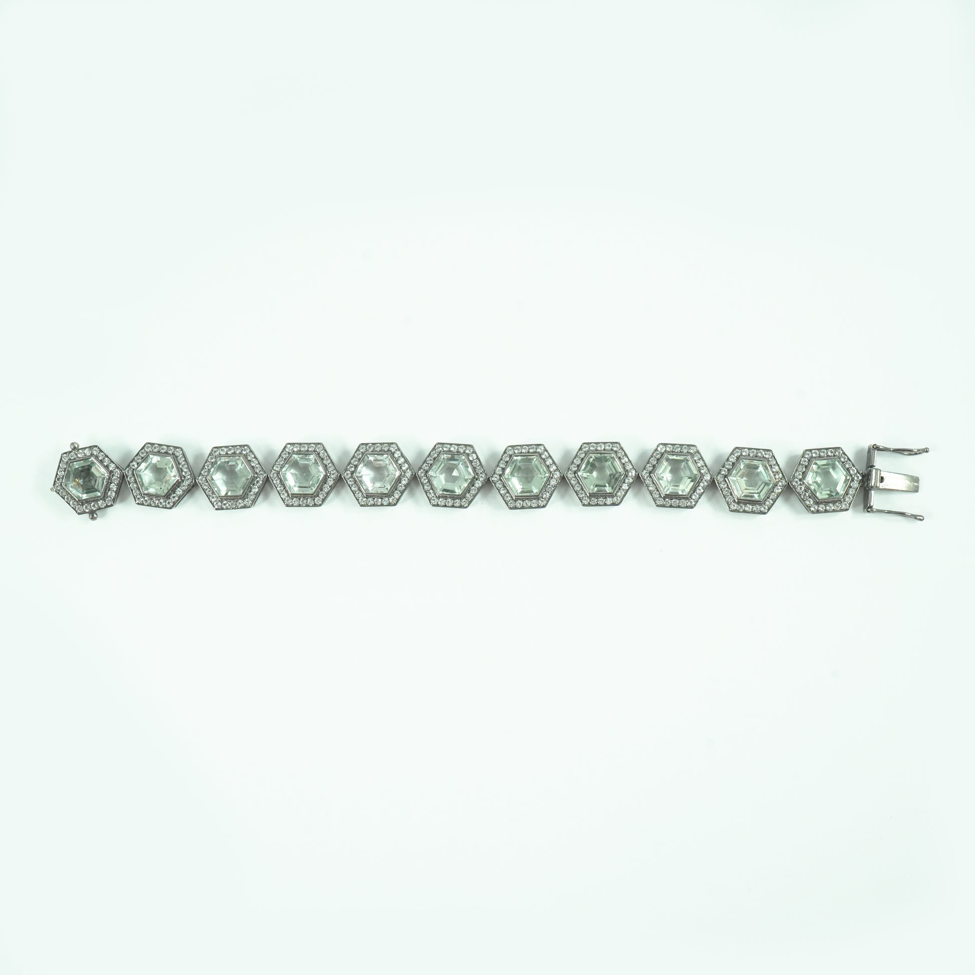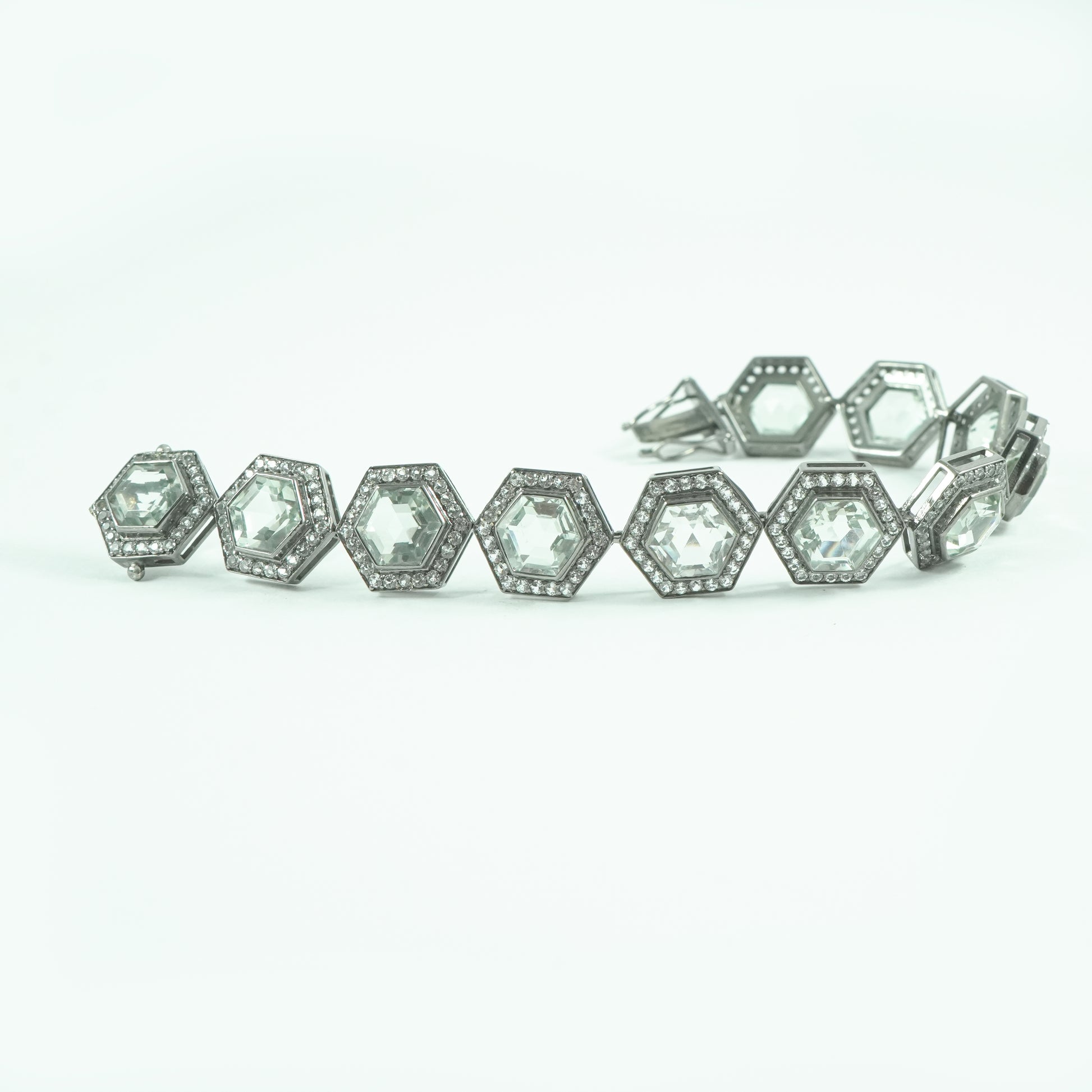 These hexagon prasiolites give this piece a stunning look and its convertible design allows you to wear it as a choker, necklace, or bracelet.