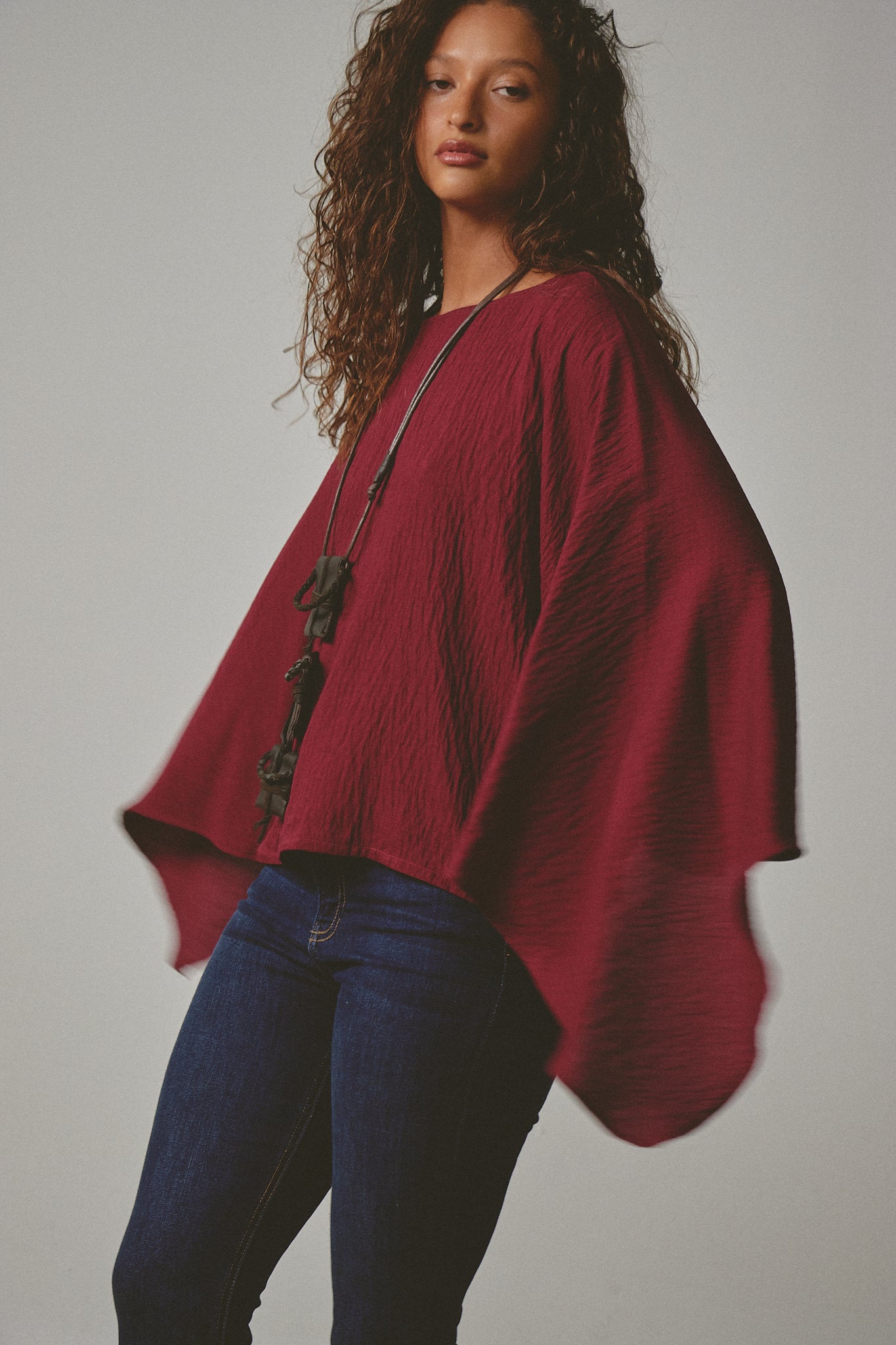 A wide-silhouette blouse crafted from a lightweight fabric that moves gracefully. Timeless, versatile, and comfortable, it’s a piece designed to effortlessly accompany the natural rhythm of everyday life. 89%Rayón 11% Nylon