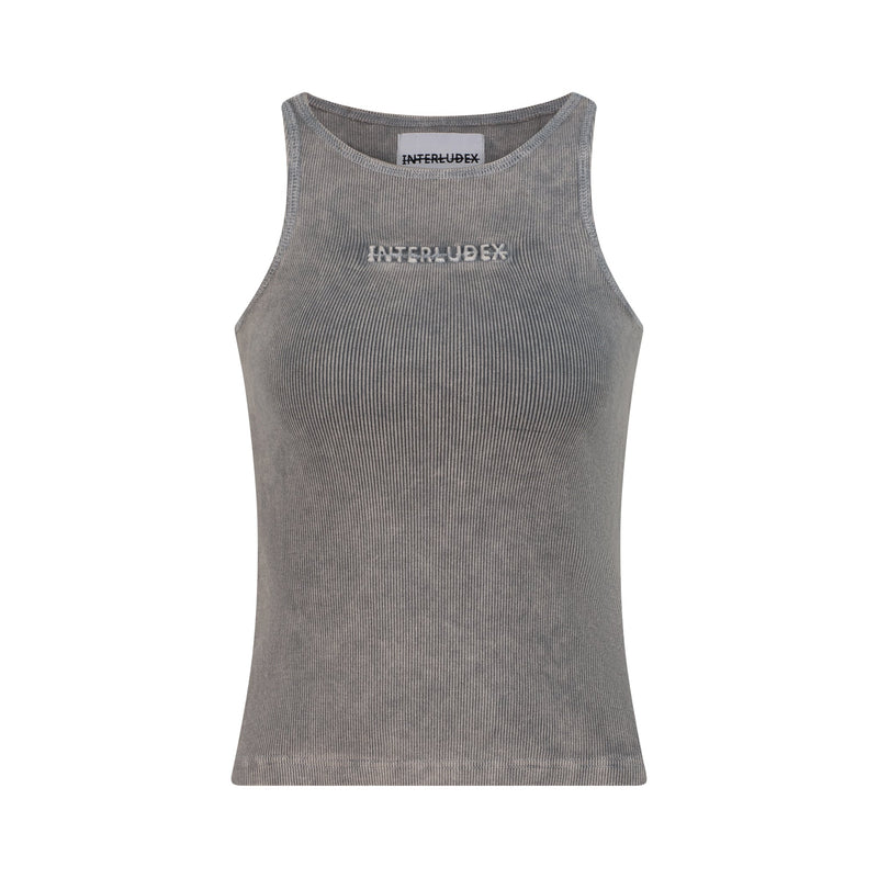 The INTERLUDEX Logo Tank features a bold embossed logo that elevates its minimalist design with a touch of luxury. Crafted for a tight, form-fitting silhouette, it delivers a sleek and modern streetwear look. Available in Acid Wash Grey and White, it pairs effortlessly with any wardrobe.