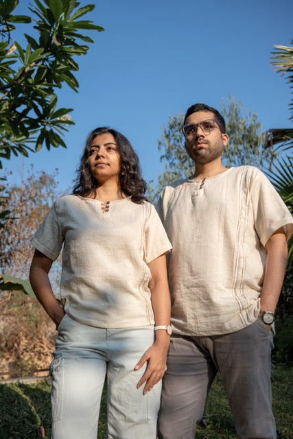 The Ēka Unisex Shirt embraces simplicity of the soil and elegance of soothing design. Infused with three heritage art forms, it's designed to be your go-to shirt in summers. For those looking for quality with a conscience, looking to start their sustainable journey. Take this Step One and choose safer clothing for your skin and better products for the planet. Handmade in 80 hours. 100% Plant-based. Zero-Waste. Ethical.