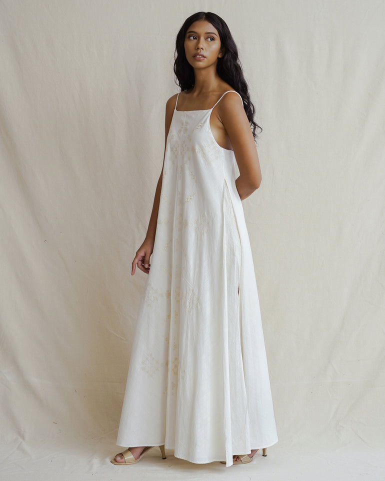 A maxi dress that flows with your every move. Designed with 2 layers of handwoven cotton to exude movement and understated elegance. She embodies a beautiful simplicity - with a touch of magic.