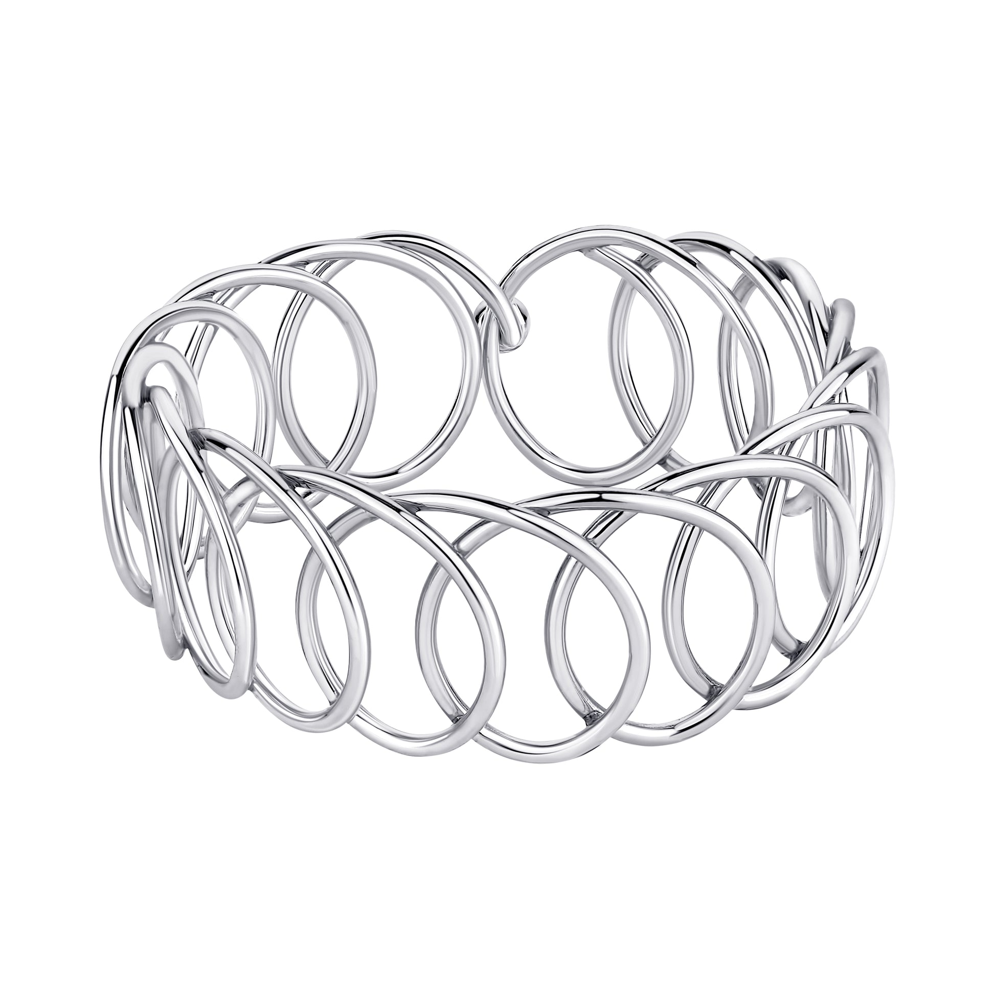 Rhodium-plated copper bracelet. Length of the jewelry is 21 cm, width is 2.5 cm.