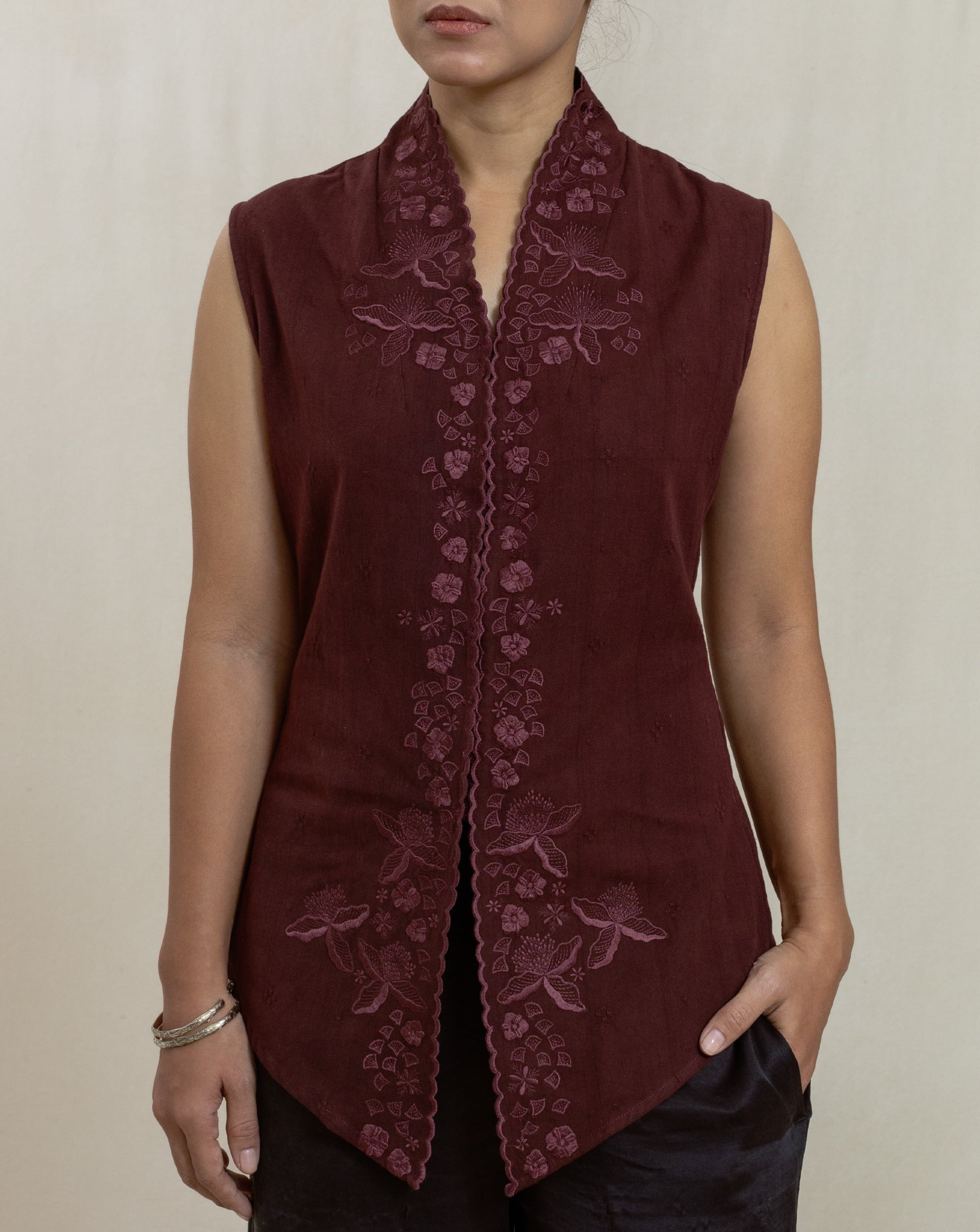 KEMBANG - Embroidered Kebaya Vest - ThreeBark Red - Tenun