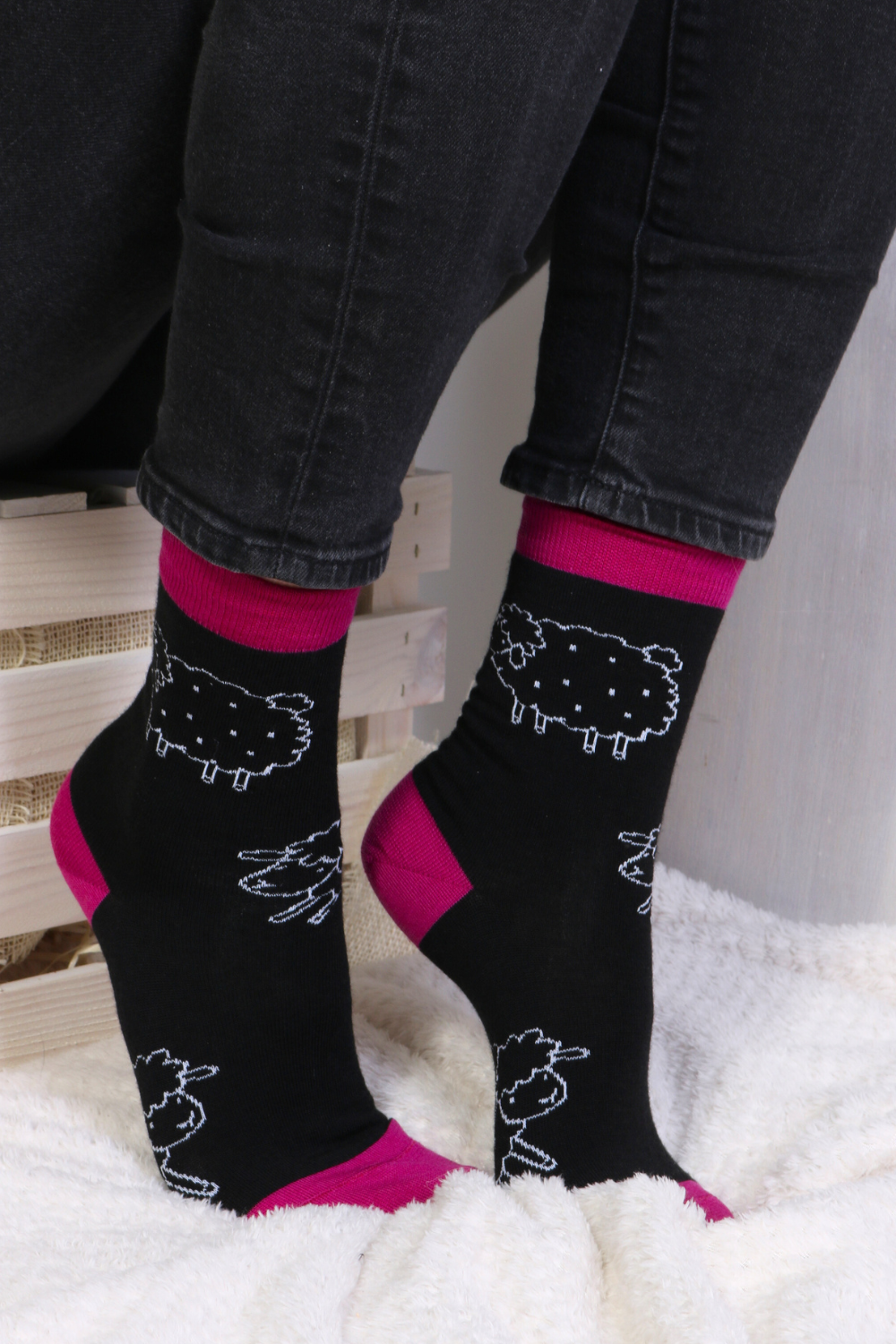 Keep your toes cozy with these adorable black merino wool socks featuring a charming sheep pattern! Made from high-quality merino wool, these socks are long-lasting and temperature-regulating, adjusting to your body’s needs while wicking away moisture and preventing overheating. The natural antibacterial properties of merino wool keep odors at bay, making them a comfortable, year-round option.