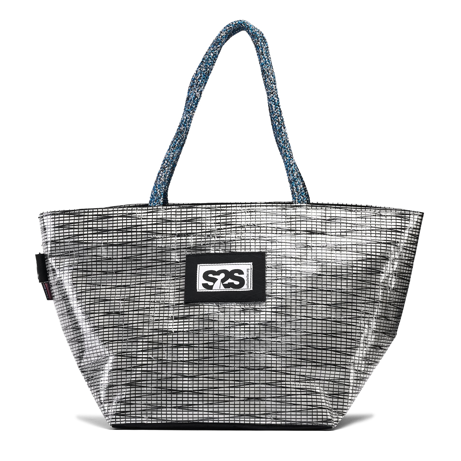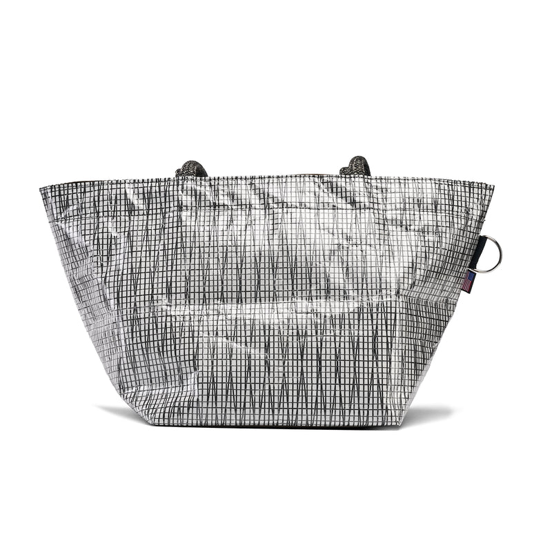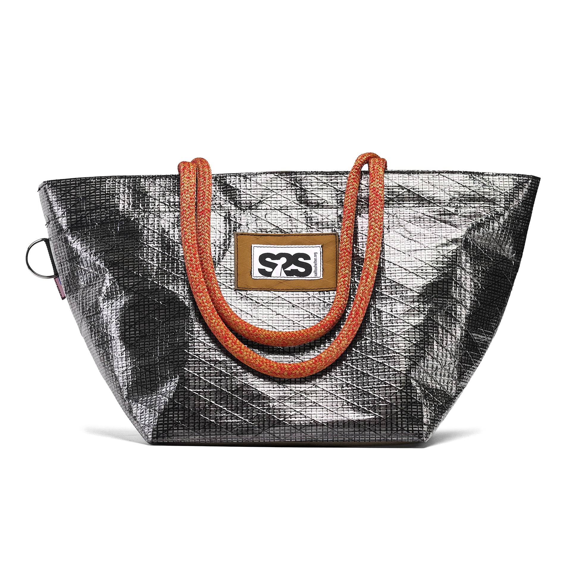 Upcycled marine-grade sailcloth and rigging reinforced stitching, water-resistant finishes, durable interior lining