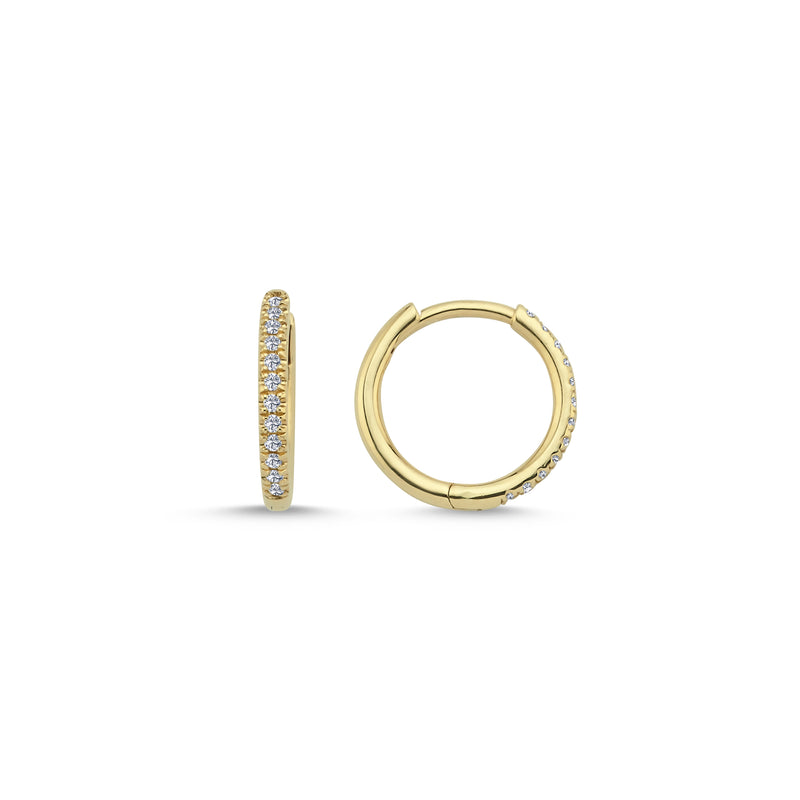 The Celina huggies are a timeless staple, featuring a delicate line of brilliant-cut pavé diamonds for a touch of everyday luxury. Crafted in 14k recycled gold, their dainty, classic design makes the Celina huggies easy to wear from the office to date night, adding that elegant bit of sparkle. Compliments guaranteed.