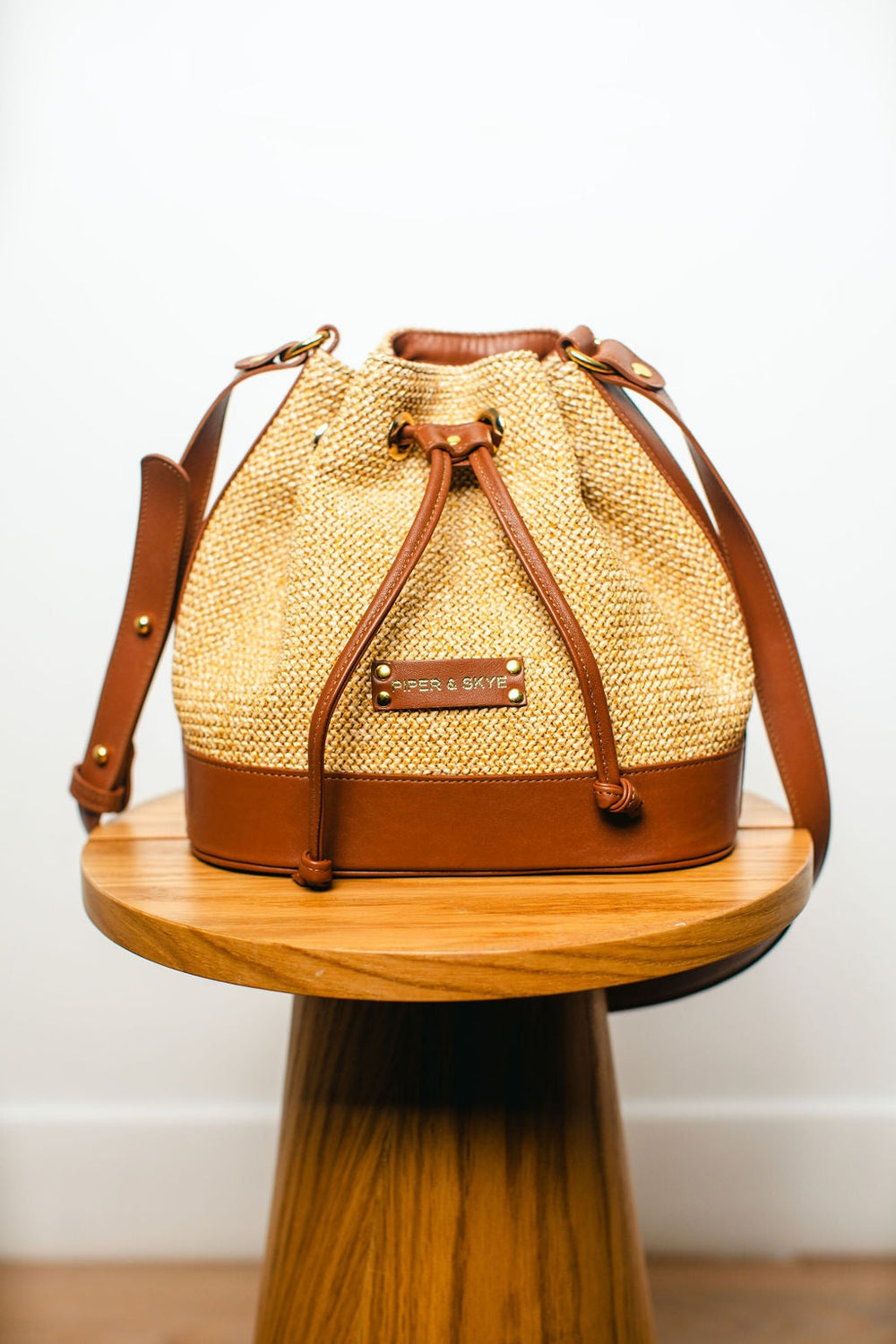 The Malaga Bucket Bag Petite offers a compact version of the classic with the same elegance and style, ideal for minimalists who love luxury. It embodies a seamless blend of coastal allure and metropolitan elegance. This exquisite accessory is meticulously crafted from high-quality raffia and leather, enriched with a Pirarucu pouch for a luxurious touch. It features a sophisticated drawstring closure, adding a refined finish.