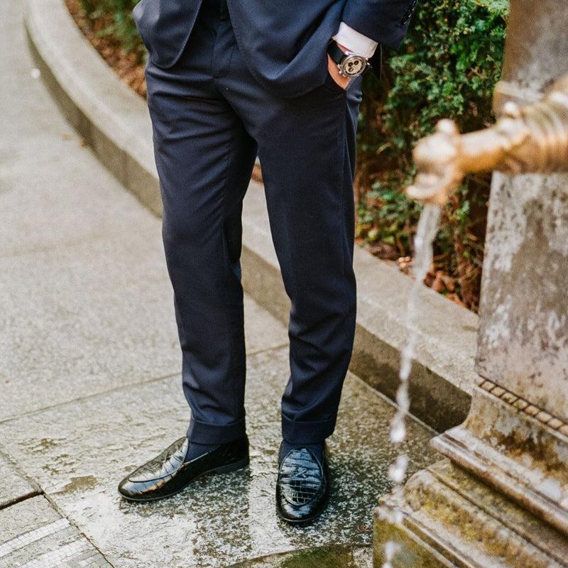 Introducing the Croc Milano Loafer - an elevated upgrade to our best-selling Milano Loafer. Featuring an extra soft croc-embossed calf upper construction, the Croc Milano feels as good as it looks. Hand-stitched signature Del Toro detailing on the forefoot complements the croc effect stripe on the heel, giving the shoe an elegant aesthetic with a bit of edge. A custom rubber sole adds elements of sophistication and sturdiness, giving the shoe a durable artisanal feel that is unique to the craftsmanship of our family of Italian shoemakers. Pair it with anything from a suit to jeans - these shoes are designed for the refined.