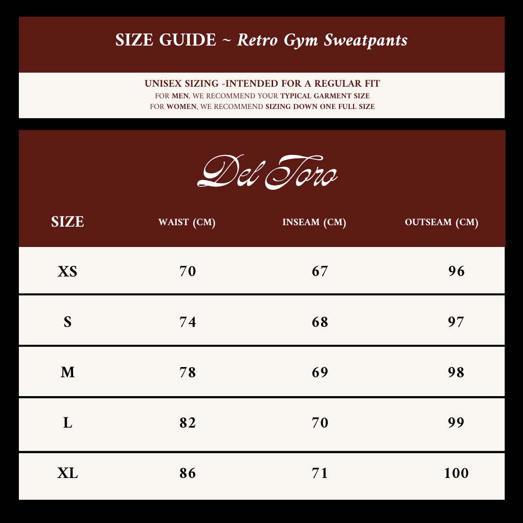 Inspired by vintage athletic design, our Retro Gym Sweatpants are even more comfortable than they appear. Featuring a loose fit and lightweight cotton, the garment features a double back pocket and embroidered Del Toro Milano logo on the left hip. Designed for both Men & Women.