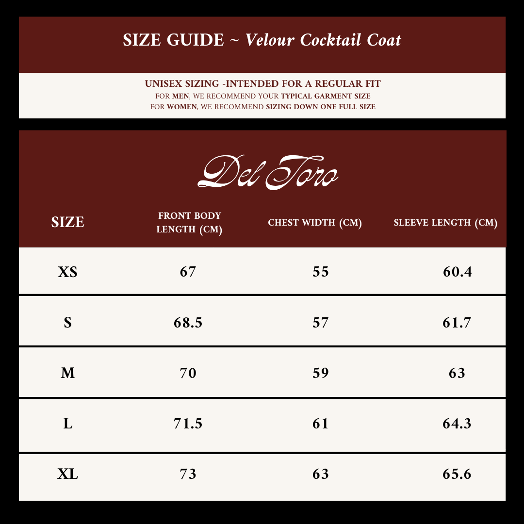 Inspired by vintage Italian-design, our Velour Cocktail Coat is the definition of functional elegance. Designed for a loose, deconstructed fit, it can be worn dressed up or down. It looks particularly sharp when worn in lieu of a tuxedo jacket with your formal attire. Featuring two side pockets and a left chest pocket, it's about as versatile as it gets. Designed for both Men & Women.