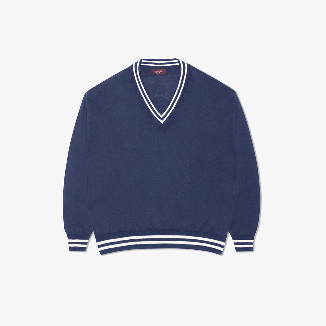 This garment is all Del Toro - a classic design with a modern perspective. Inspired by a classic Italian style, our Vintage V-Neck Sweater is a testament to timeless design. Crafted for a loose fit, the garment features a dropped shoulder and mid-cut V. It's woven from lightweight cotton and can be best worn as a light layer or all on its own. This may be our favorite piece from the collection. Designed for both Men & Women.