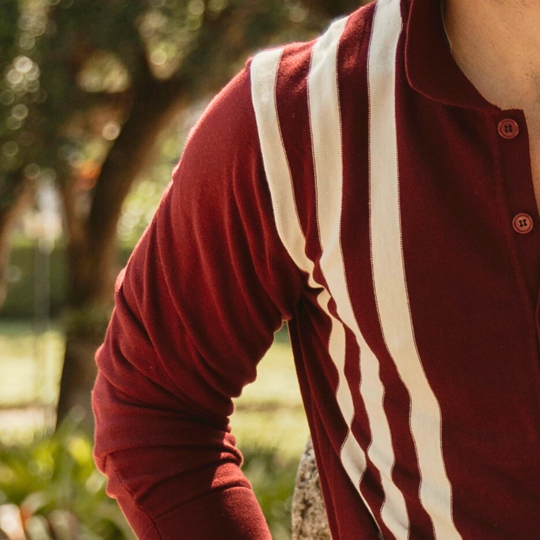 Men's Vintage Stripe Polo Cardigan - Burgundy / Cream Stripe